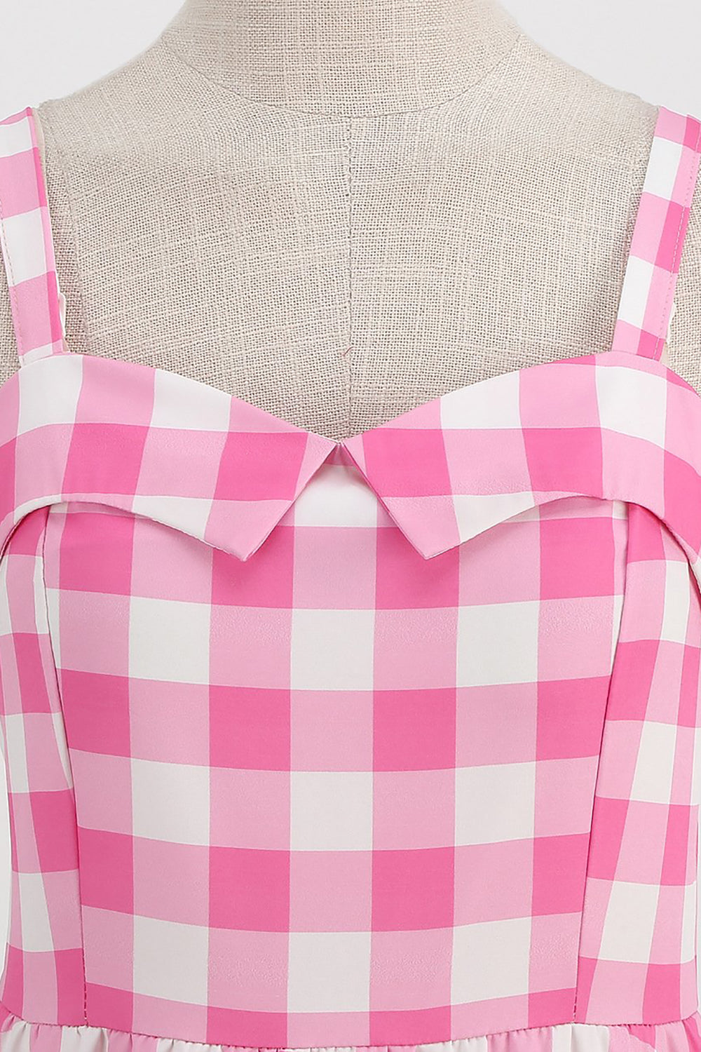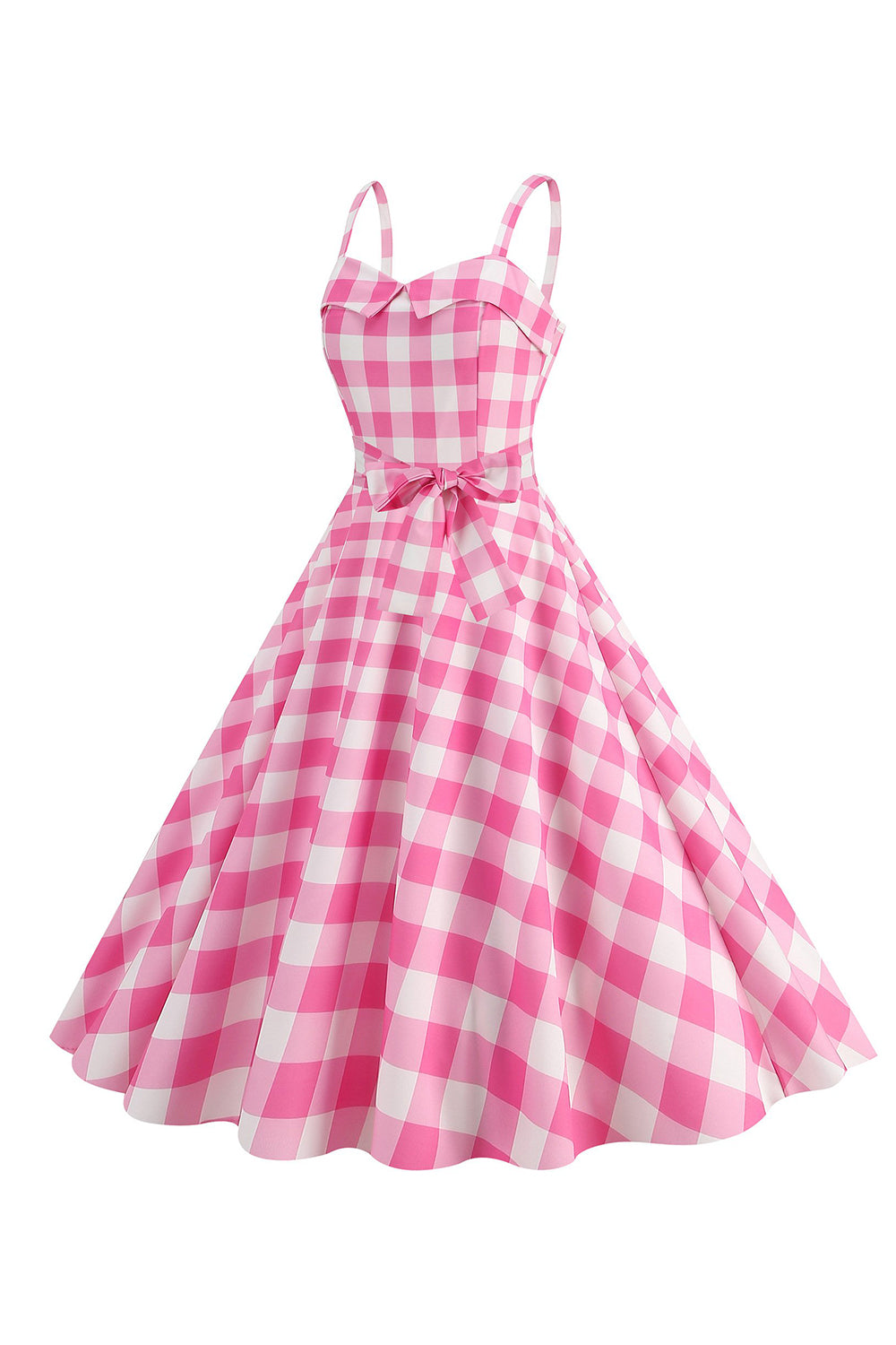 Plaid Pink Spaghetti Straps A Line 1950s Dress