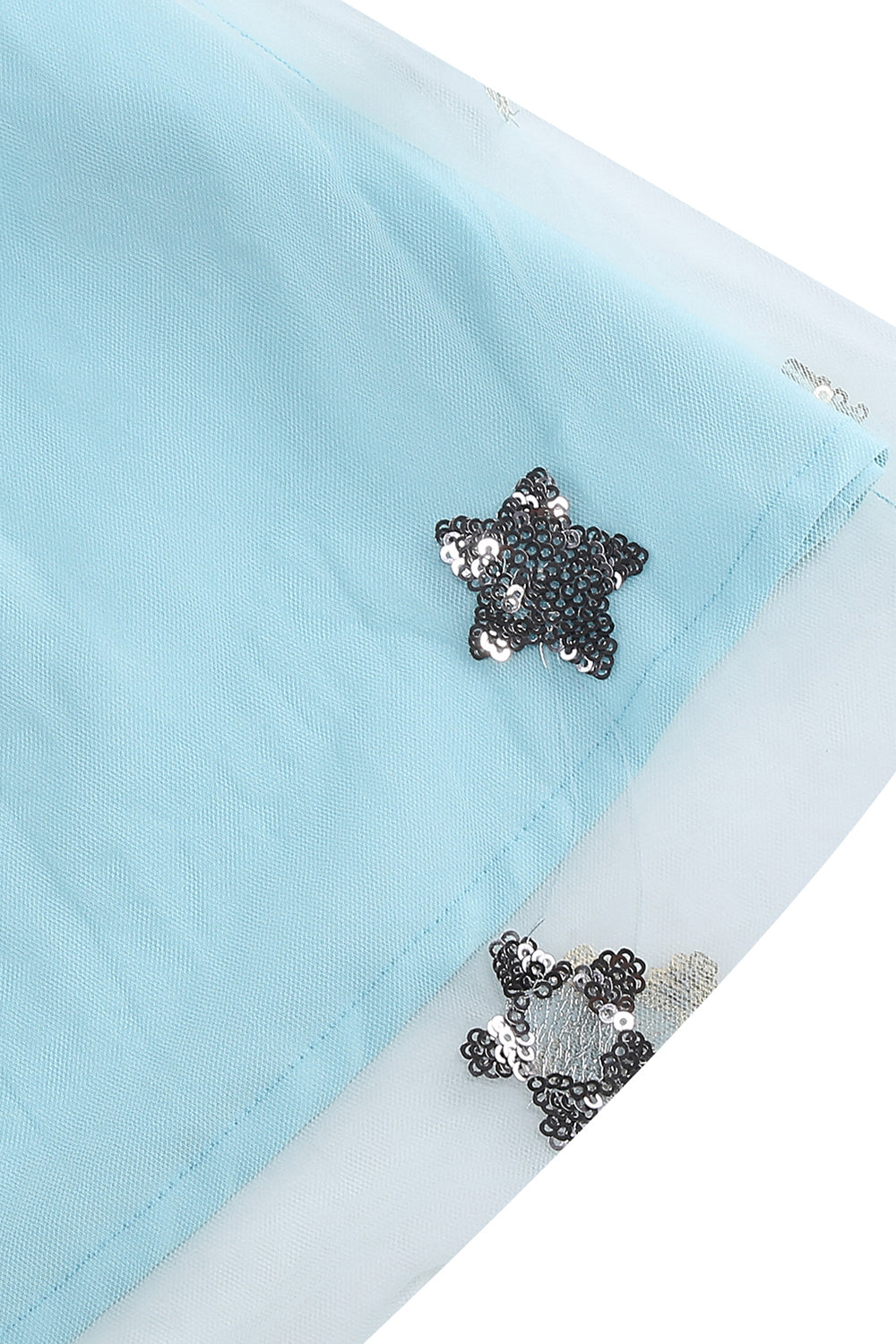 Floral Blue A Line 1950s Dress with Long Sleeves
