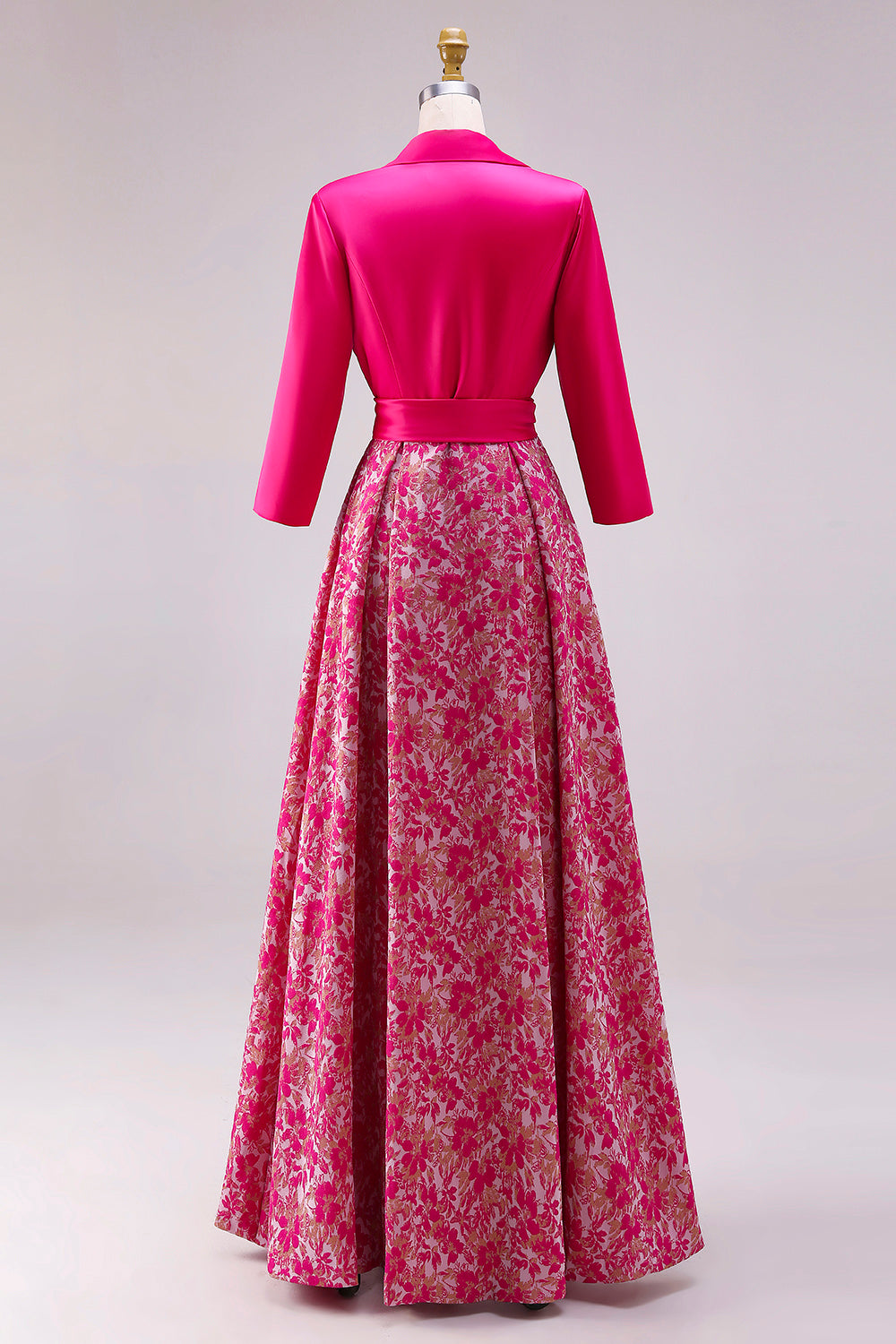 Fuchsia Floral A Line Satin Long Mother of the Bride Dress with Bowknot