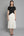 Ivory and Black Ruched Patchwork Long Work Dress with Pleats