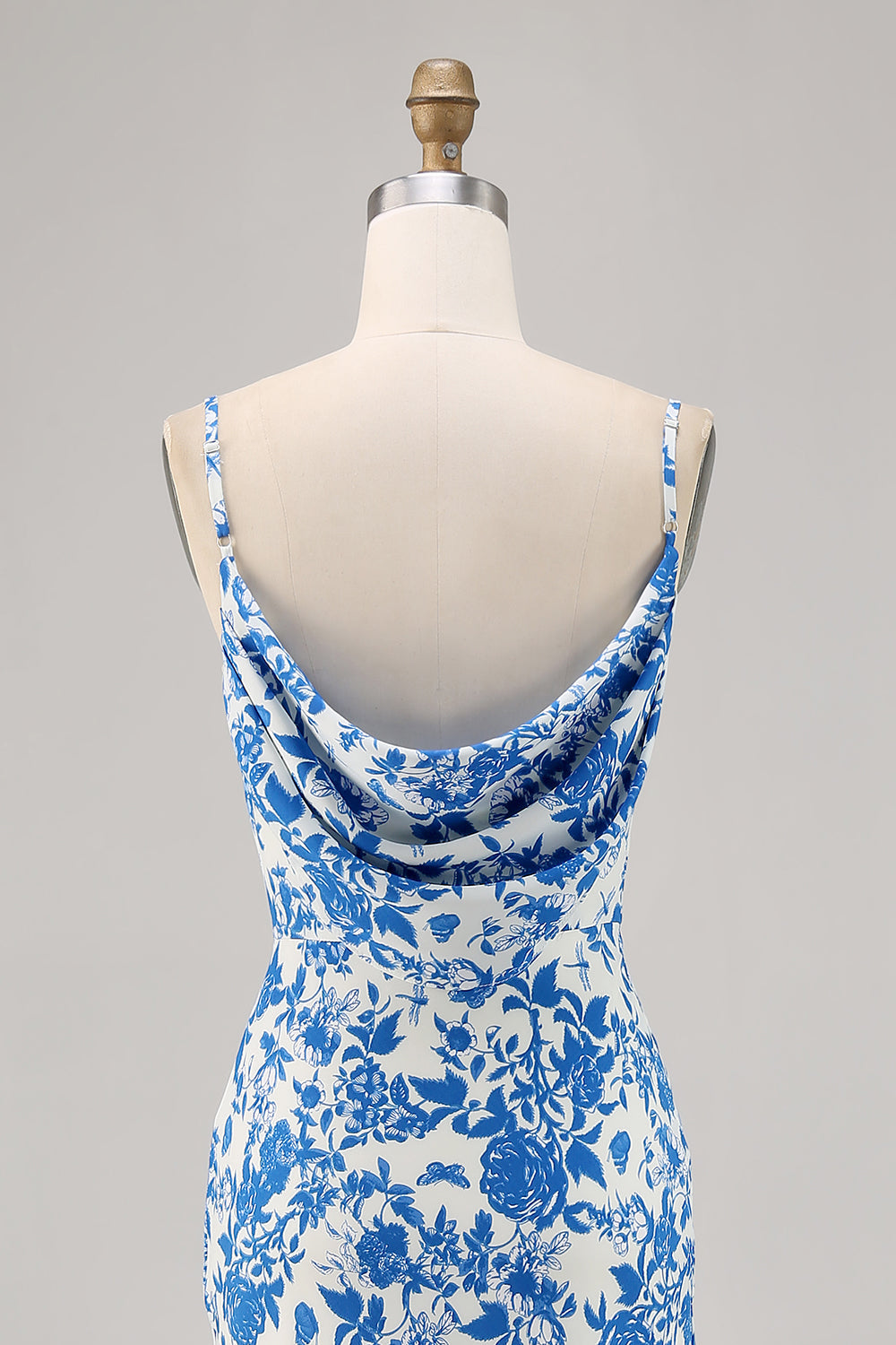 Blue Flower Cowl Neck Mermaid Long Bridesmaid Dress