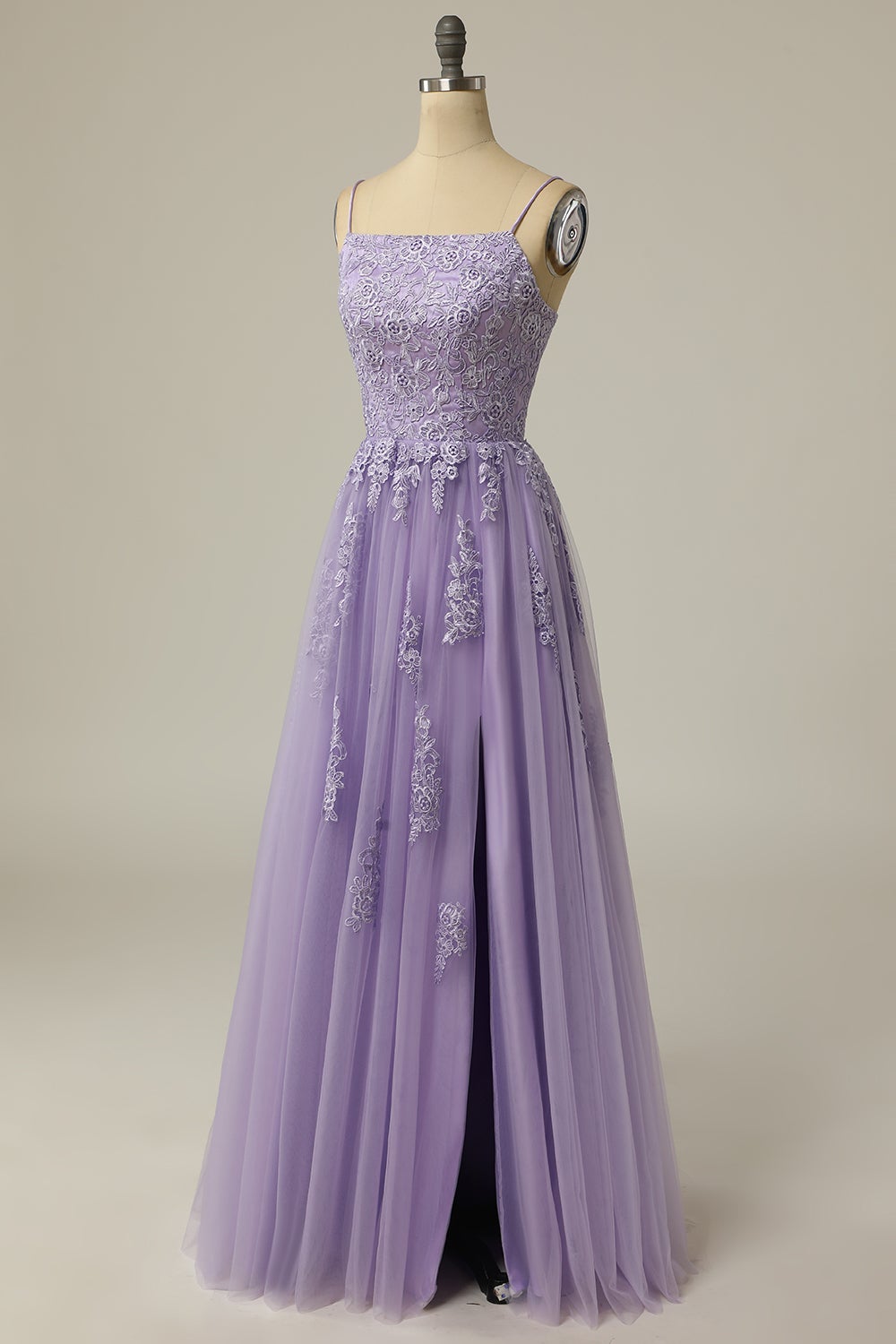 A Line Strapless Light Purple Long Prom Dress with Appliques