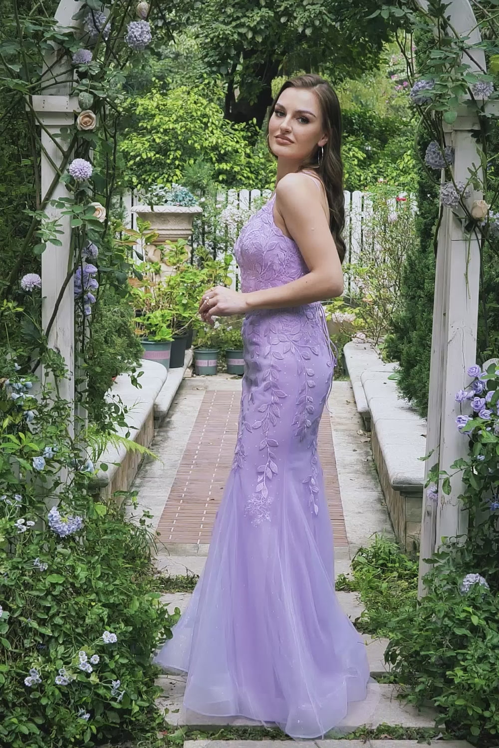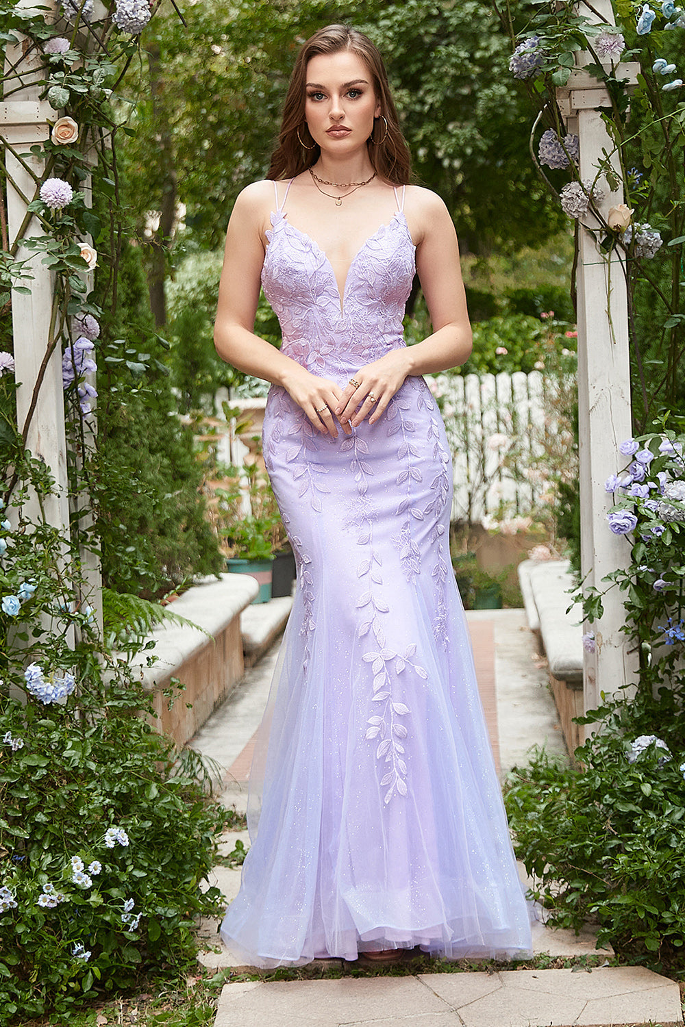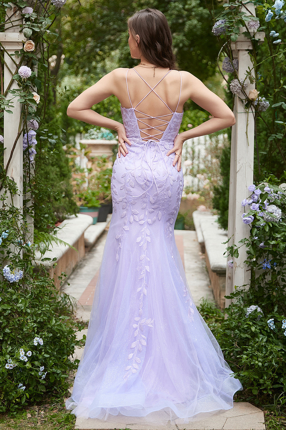 Spaghetti Straps Mermaid Long Purple Prom Dress With Appliques