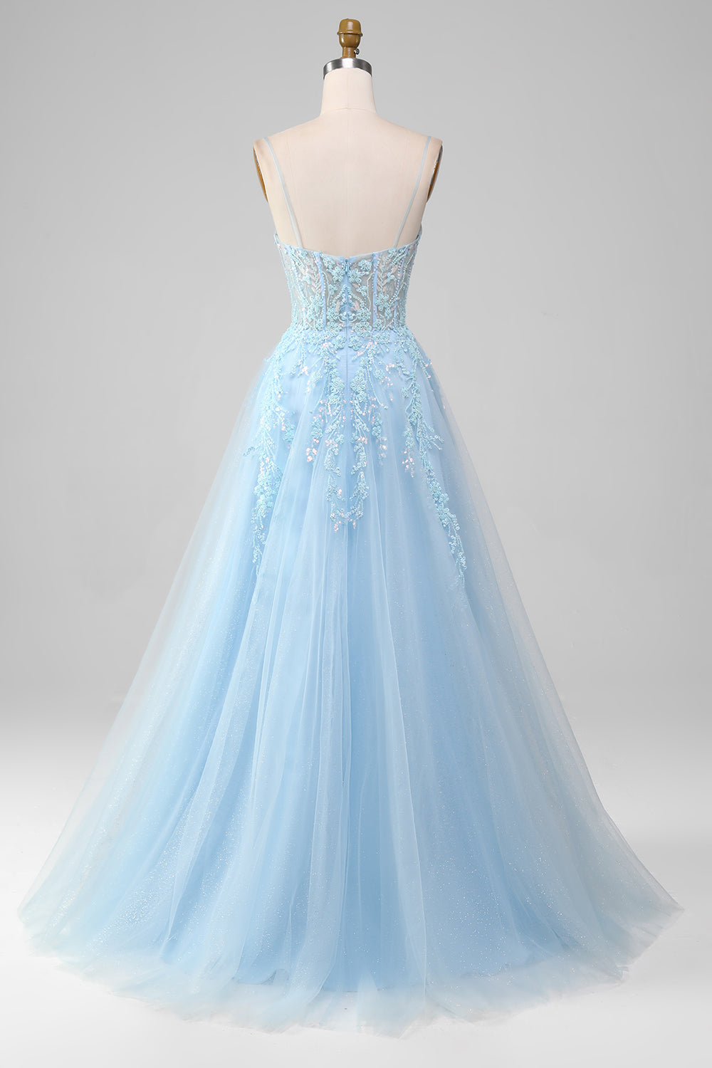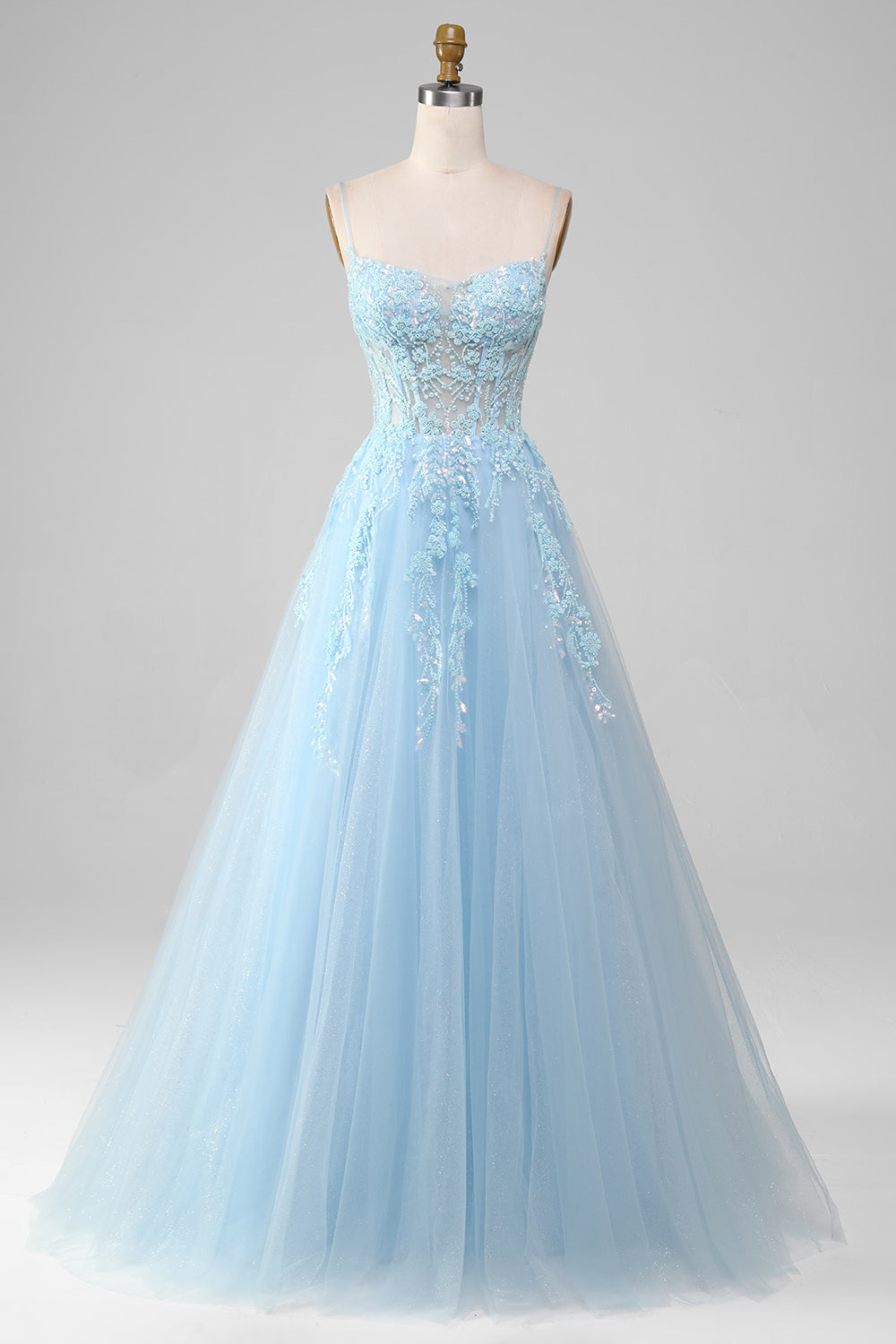 Spaghetti Straps A Line Red Prom Dress with Appliques