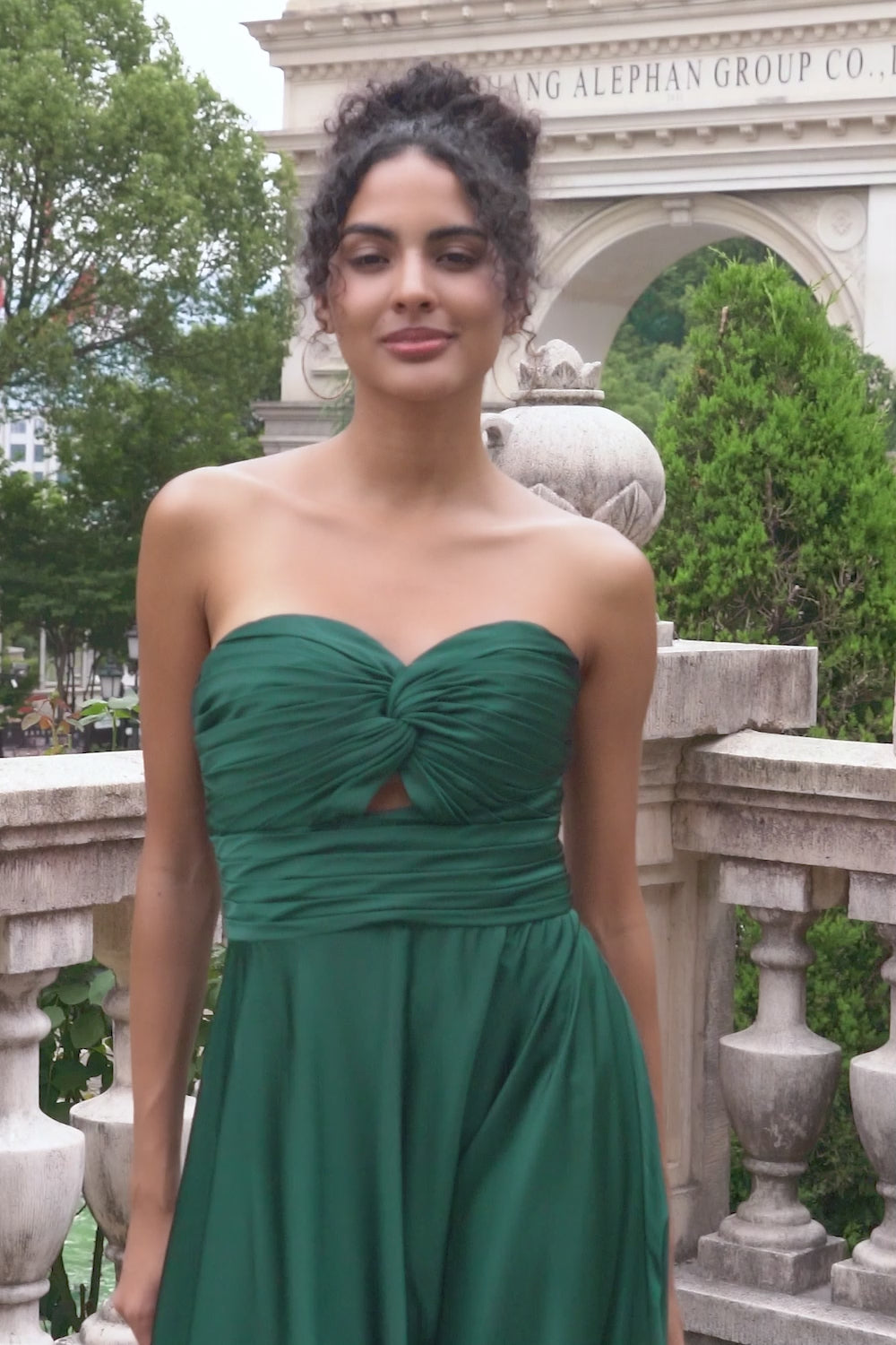 Dark Green A Line Sweetheart Keyhole Long Bridesmaid Dress