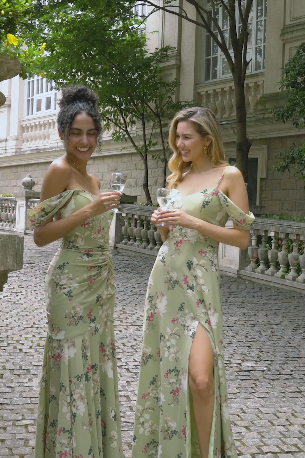 Green A Line Spaghetti Straps Floral Wedding Guest Dress with Slit