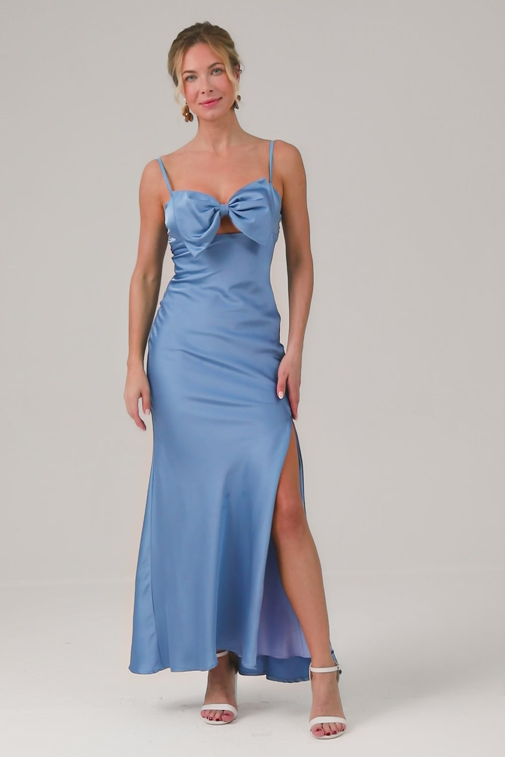 Blue Mermaid Spaghetti Straps Bridesmaid Dress with Bowknot