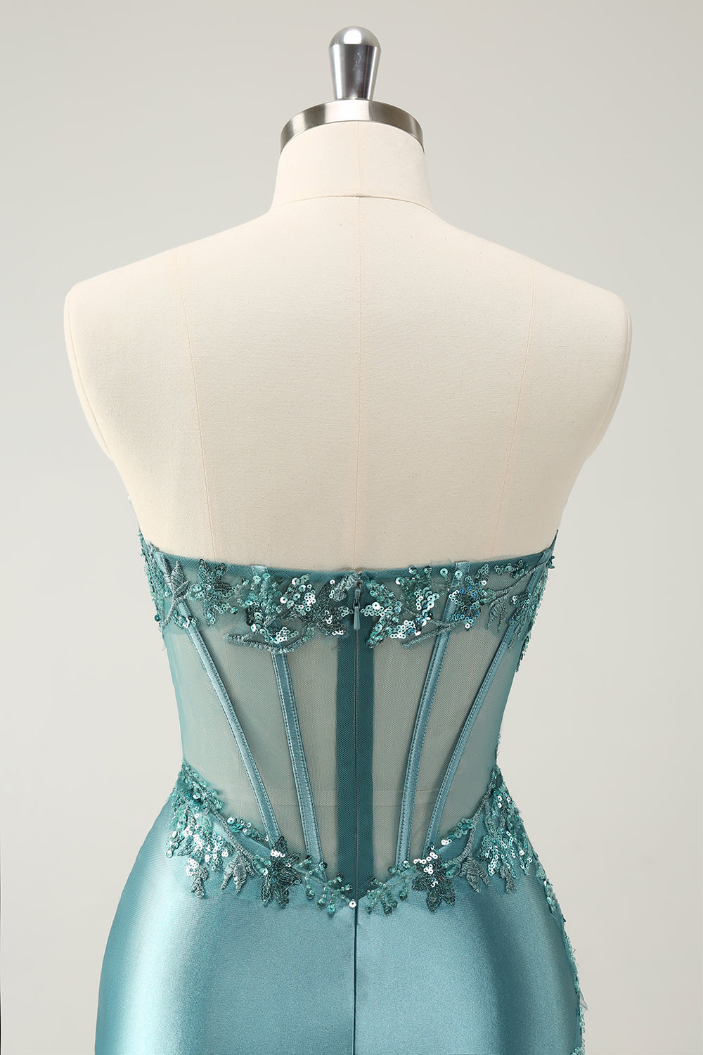 Glitter Peacock Bodycon Strapless Corset Appliques Graduation Dress