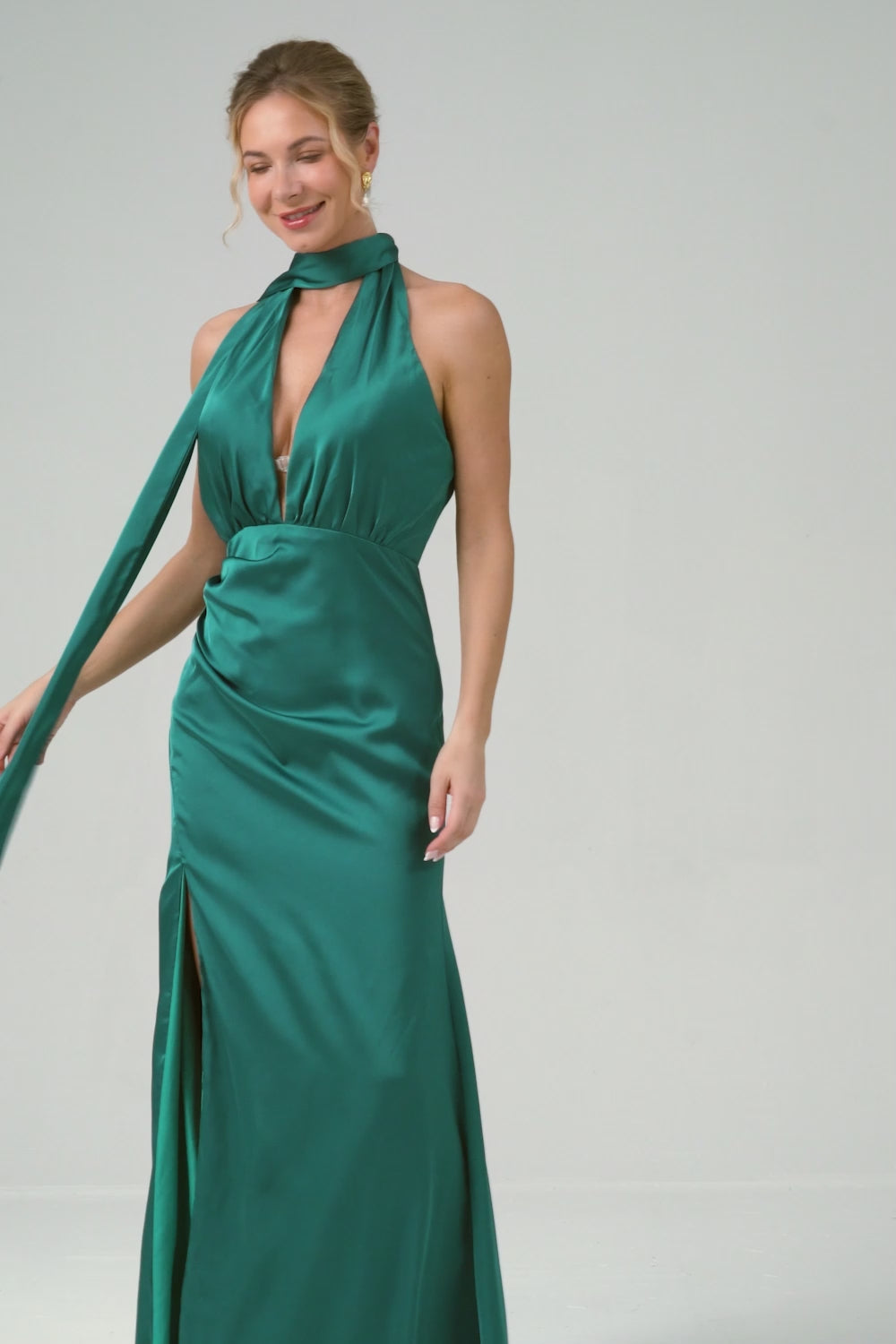 Peacock Sheath Halter Backless Bridesmaid Dress with Slit