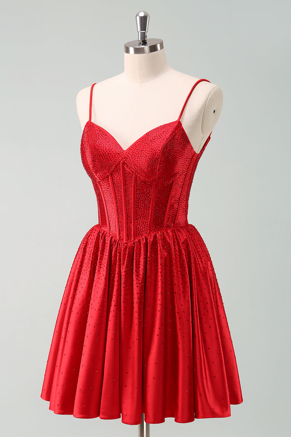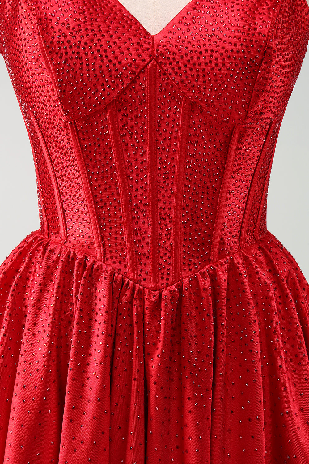 Dark Green A-Line Spaghetti Straps Corset Pleated Graduation Dress
