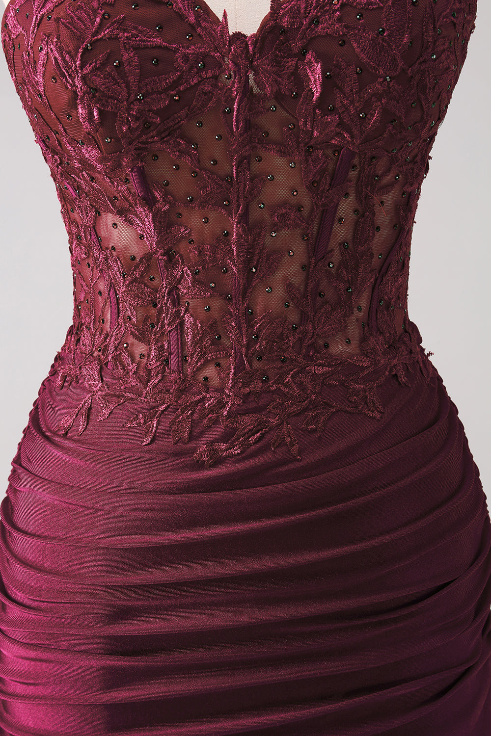 Lilac Strapless Corset Pleated Tight Graduation Dress with Appliques