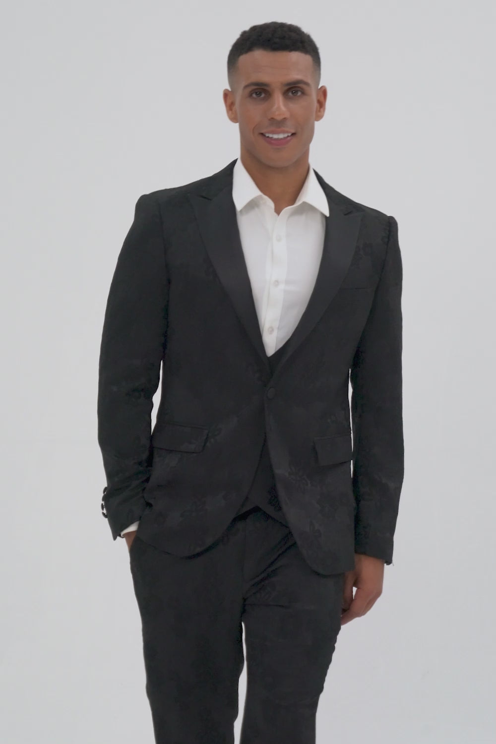 Black Peak Lapel Jacquard 3 Pieces Men's Suits