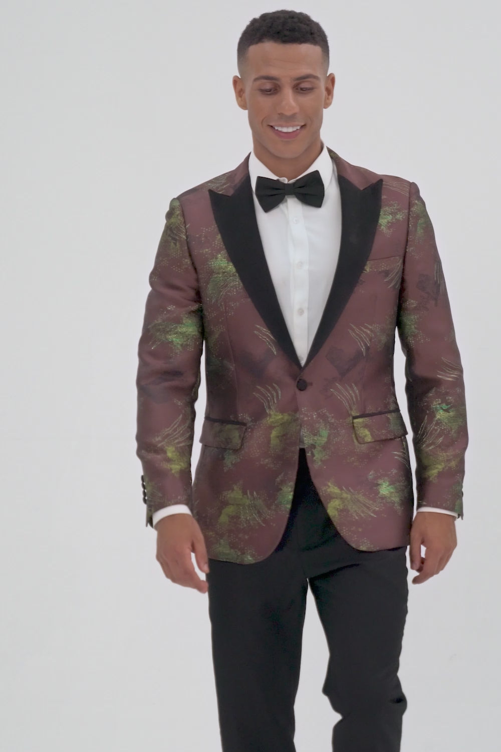 Brown Jacquard Peak Lapel 2 Pieces Men's Suits