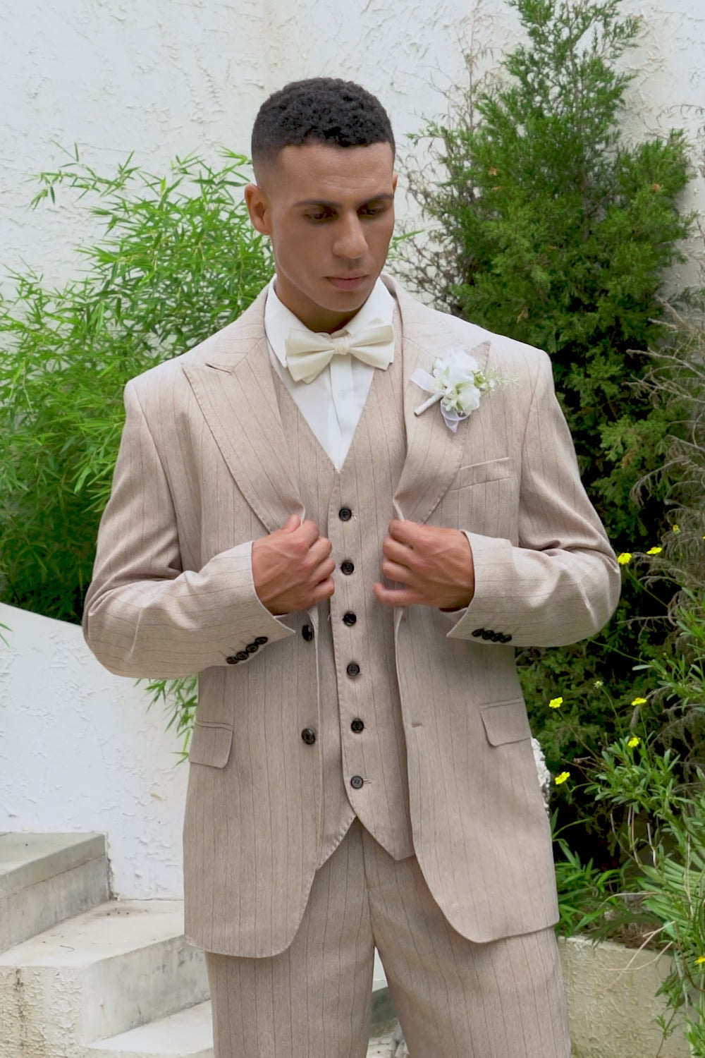 Ivory Peak Lapel Single Breasted Vertical Striped 3 Pieces Men's Wedding Suits