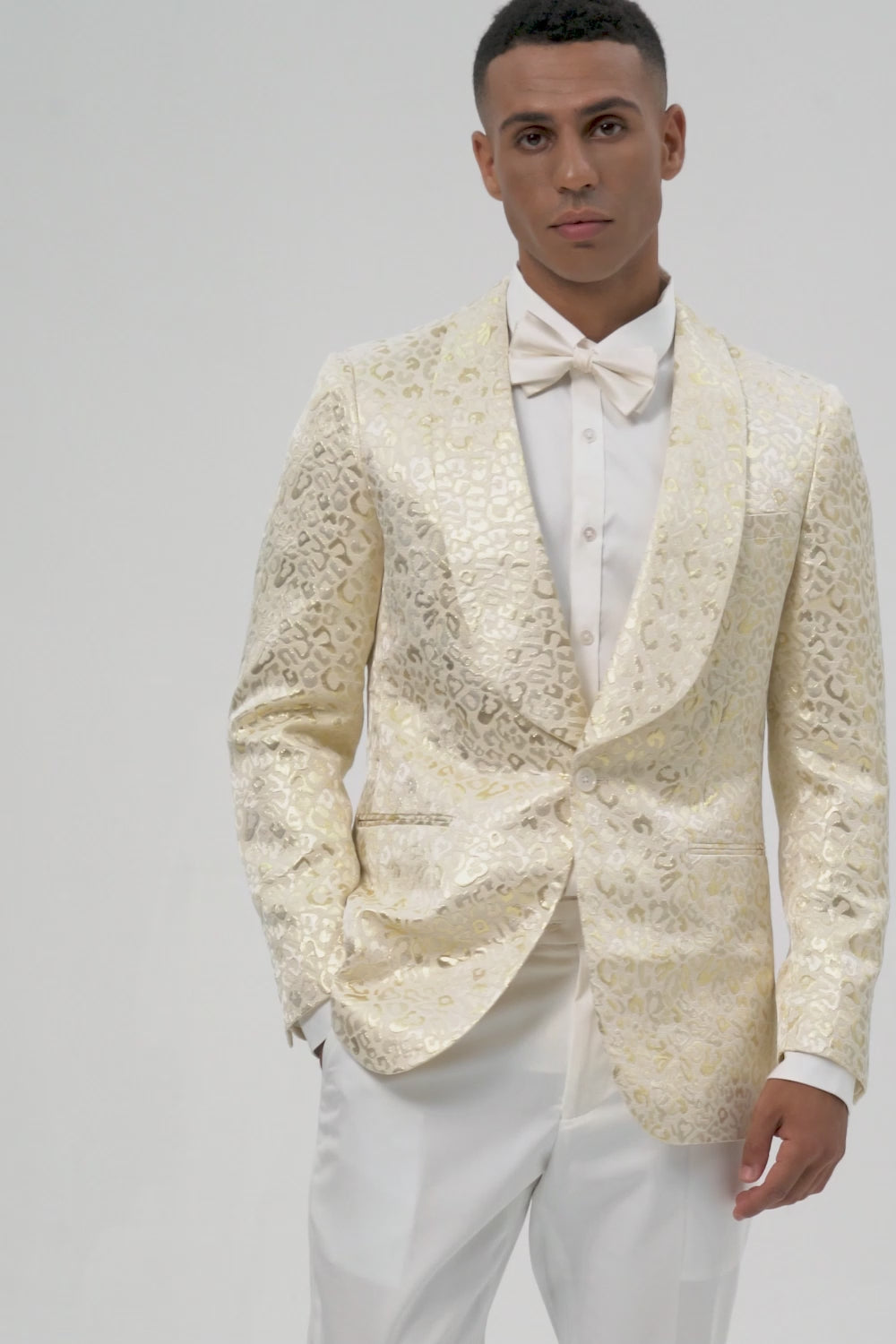 One Button Shawl Lapel Ivory Jacquard Men's Blazer