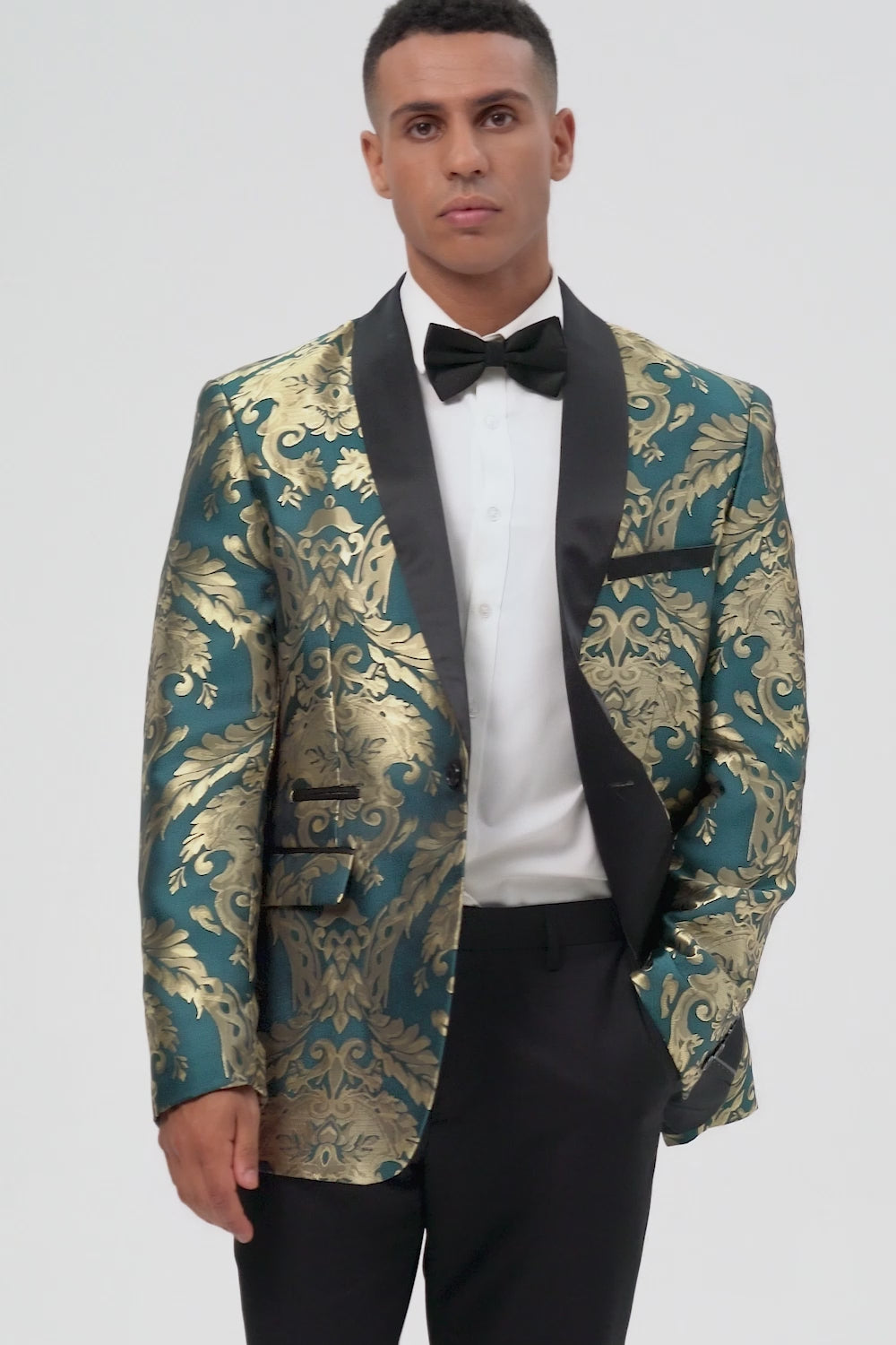Shawl Lapel Dark Green One Button Jacquard Men's Blazer
