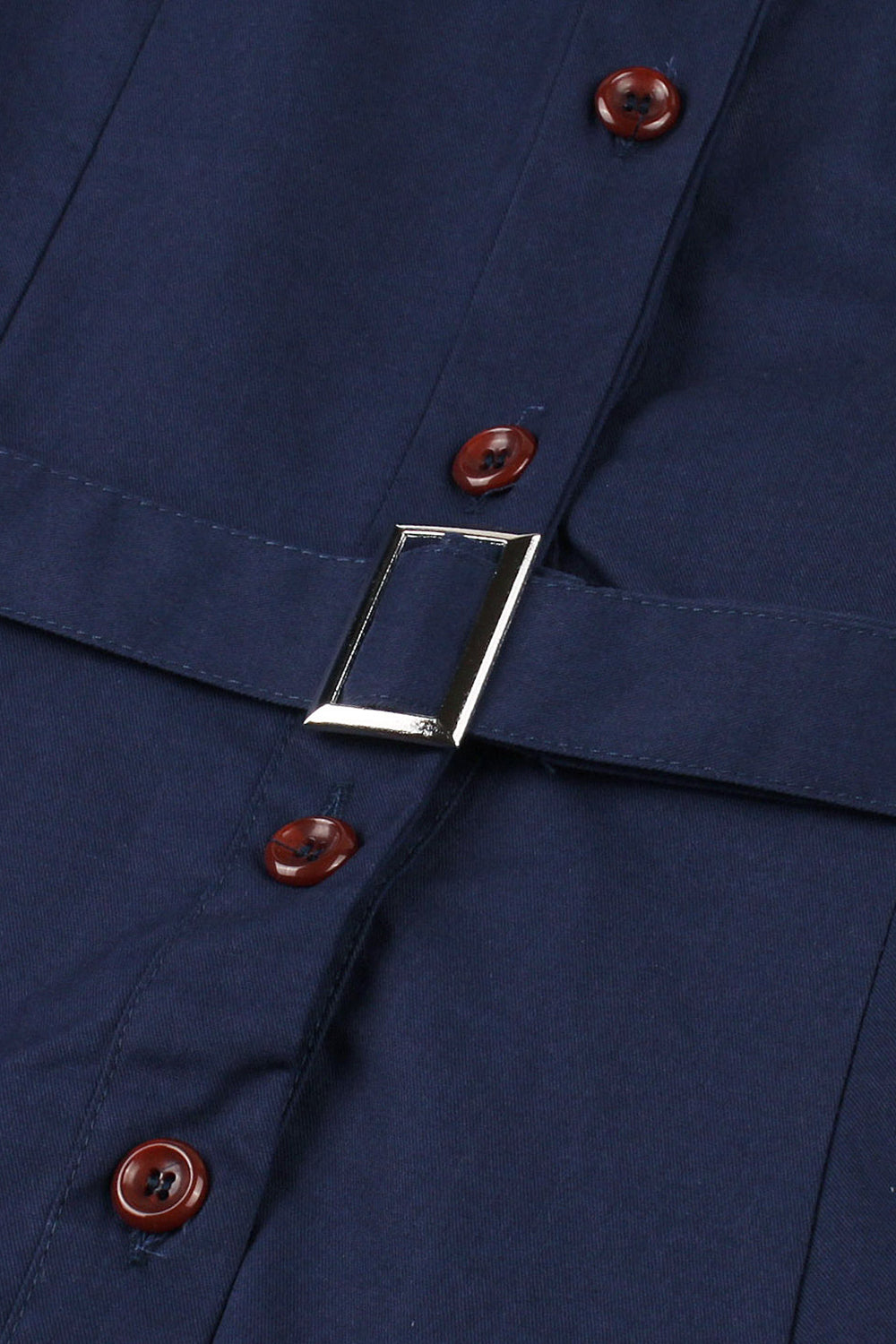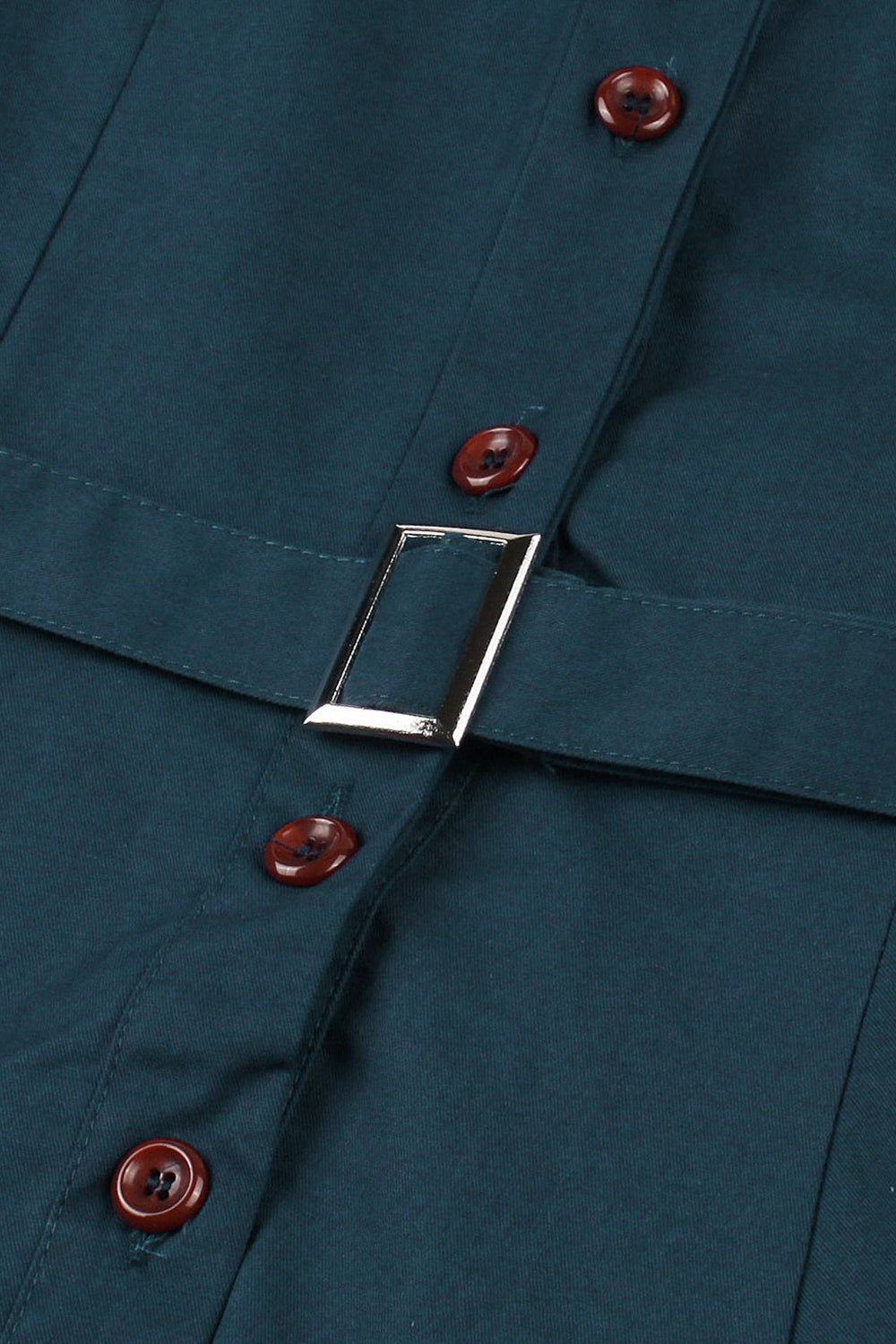 Simple Burgundy Lapel Neck Vintage 1950s Dress