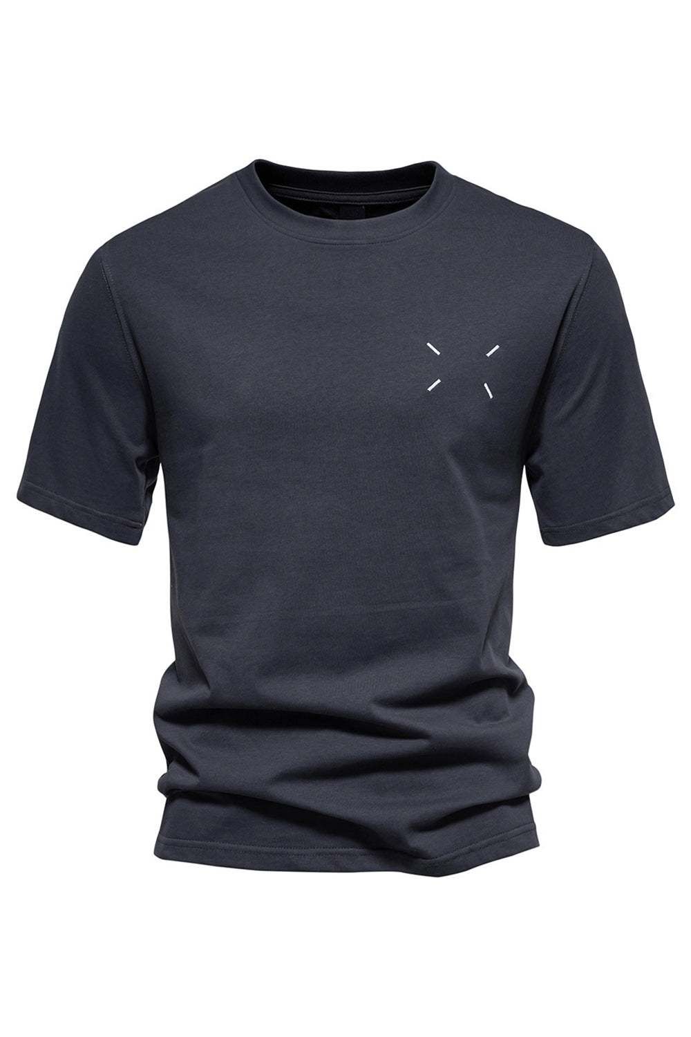 Black Cotton Short Sleeves Crewneck Men's Shirt