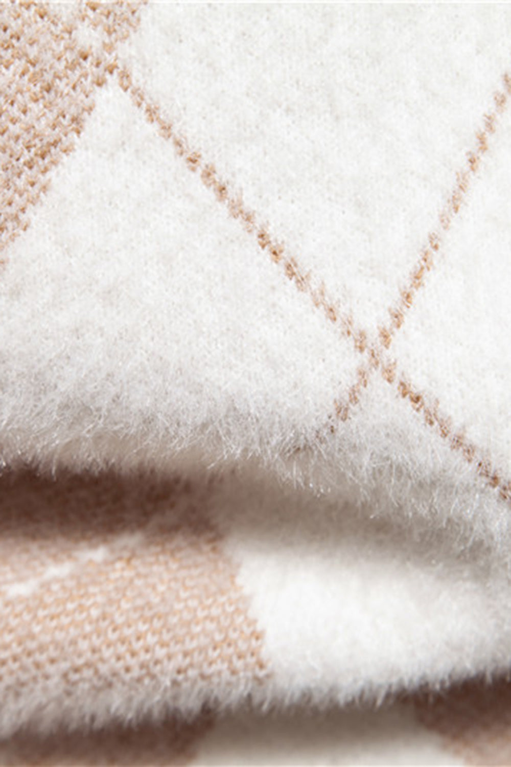 Light Khaki Men's Round Neck Knit Printed Sweater
