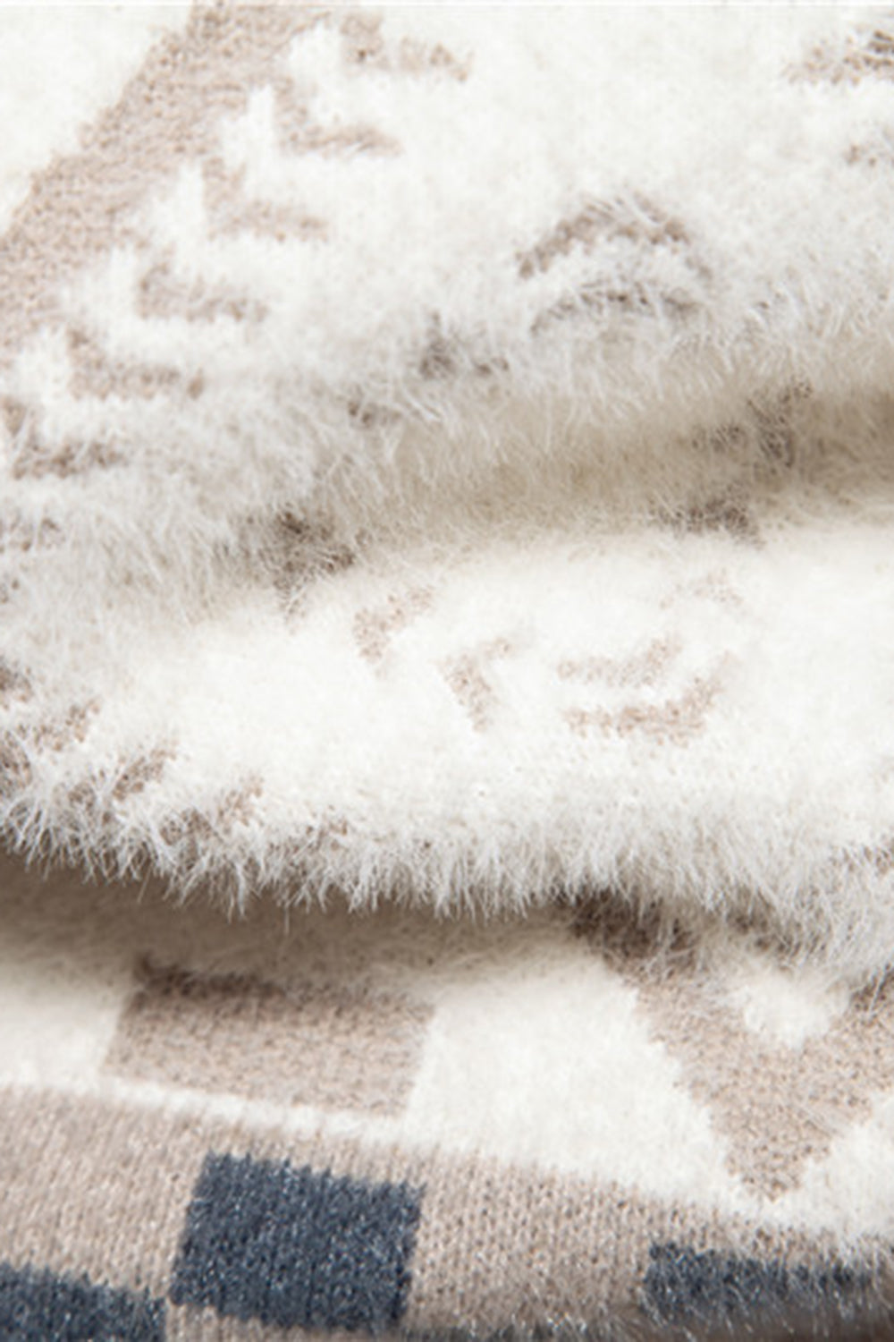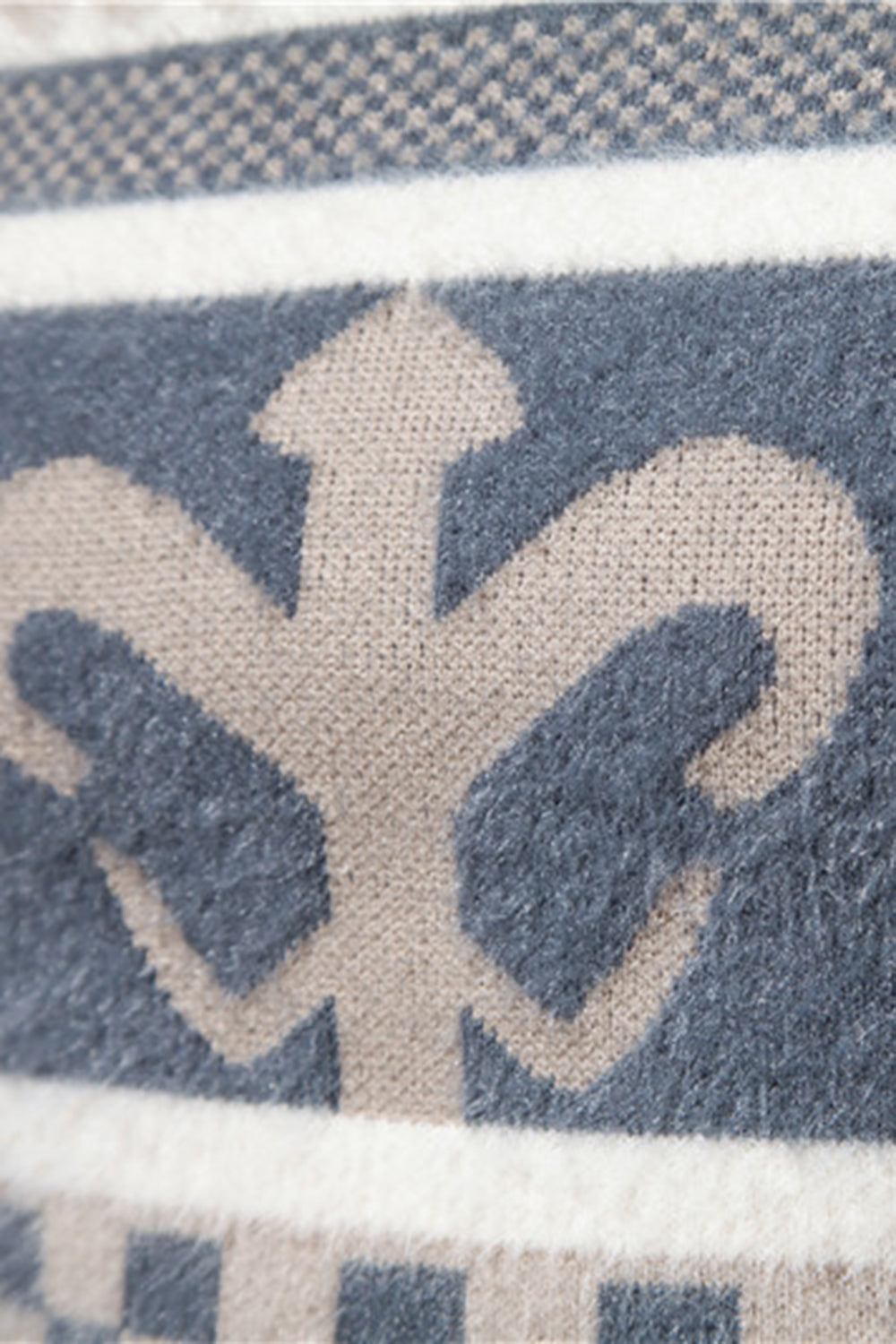 Men's Slim Fit Khaki Pullover Printed Knitted Sweater