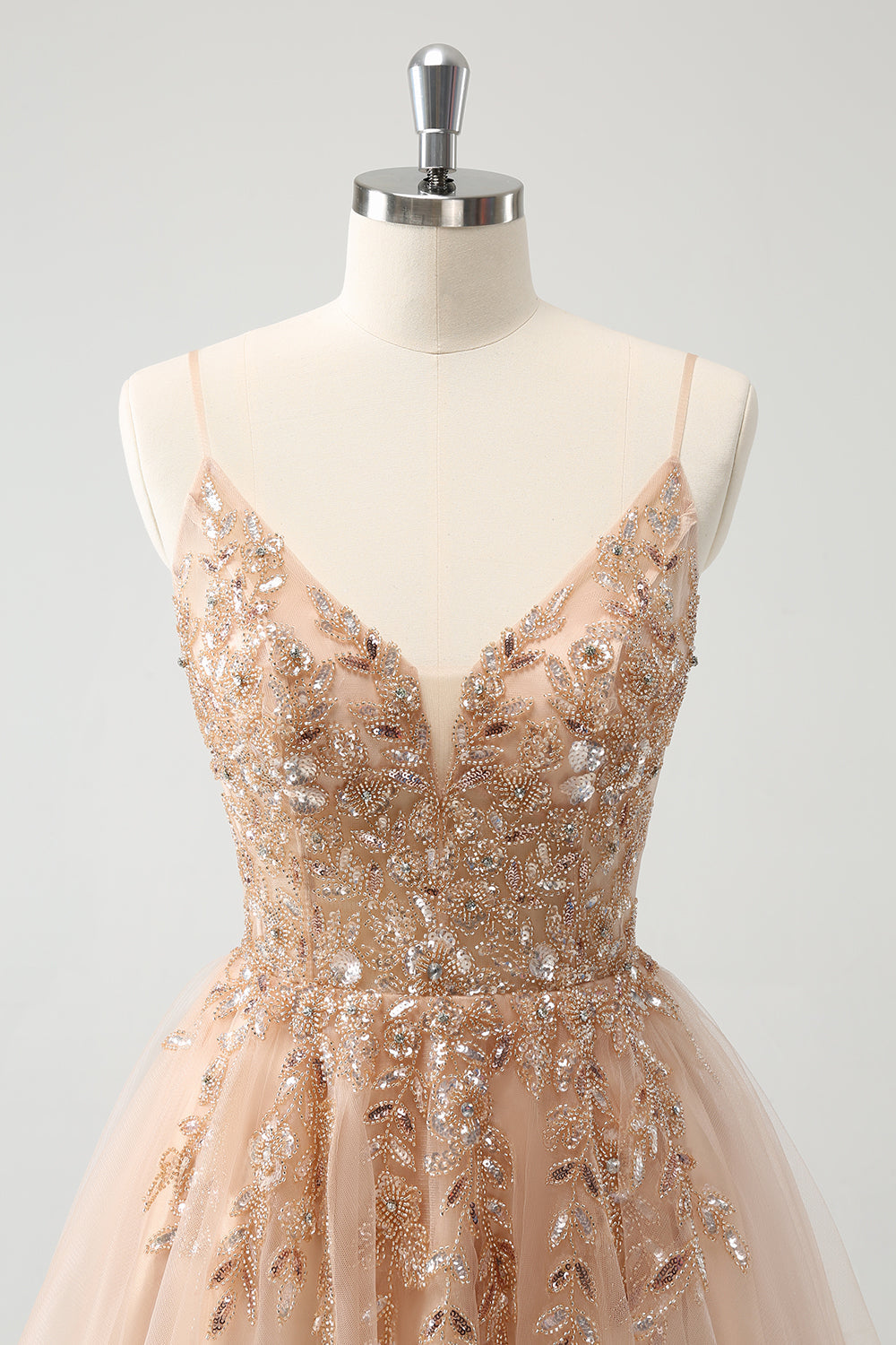 Blush A Line Spaghetti Straps Sequin Tulle Graduation Dress