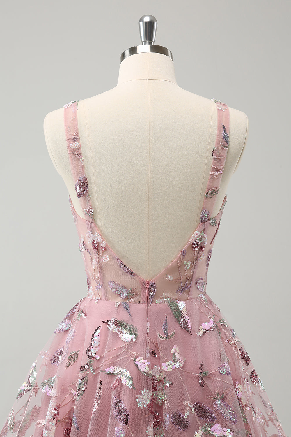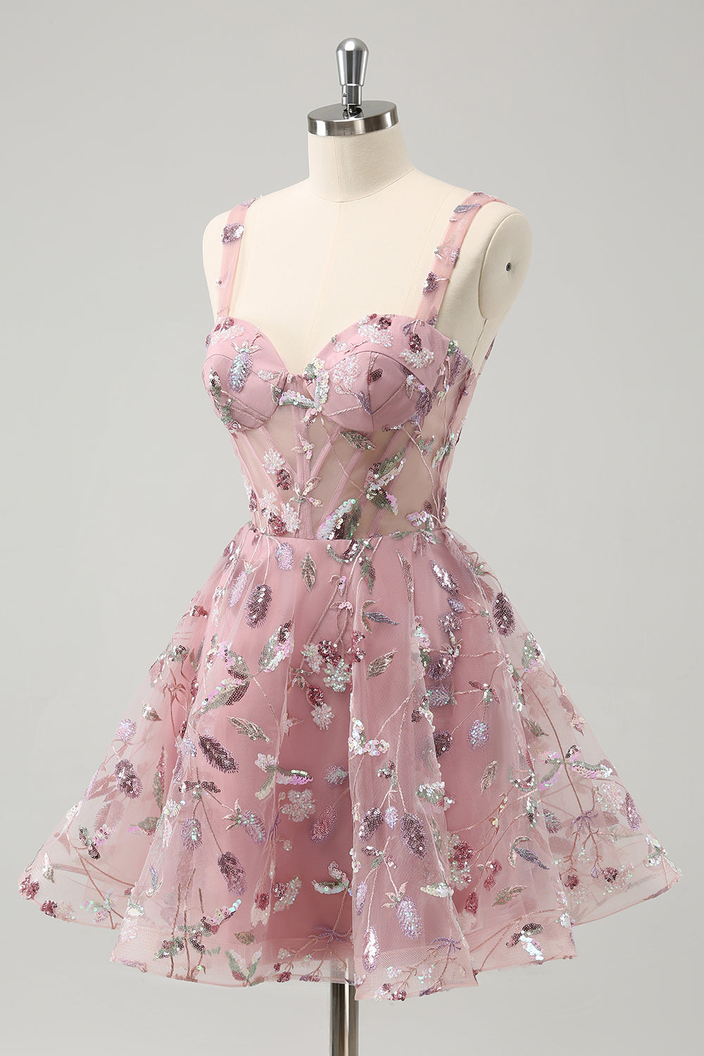 Blush A-Line Spaghetti Straps Short Corset Graduation Dress with Beading