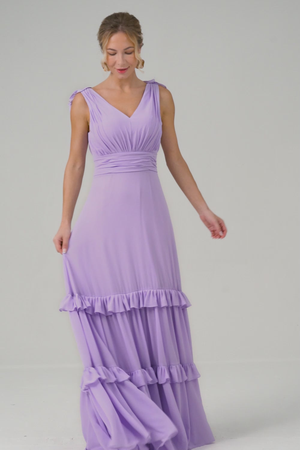 Lilac Chiffon A-Line Ruched Bridesmaid Dress with Ruffles