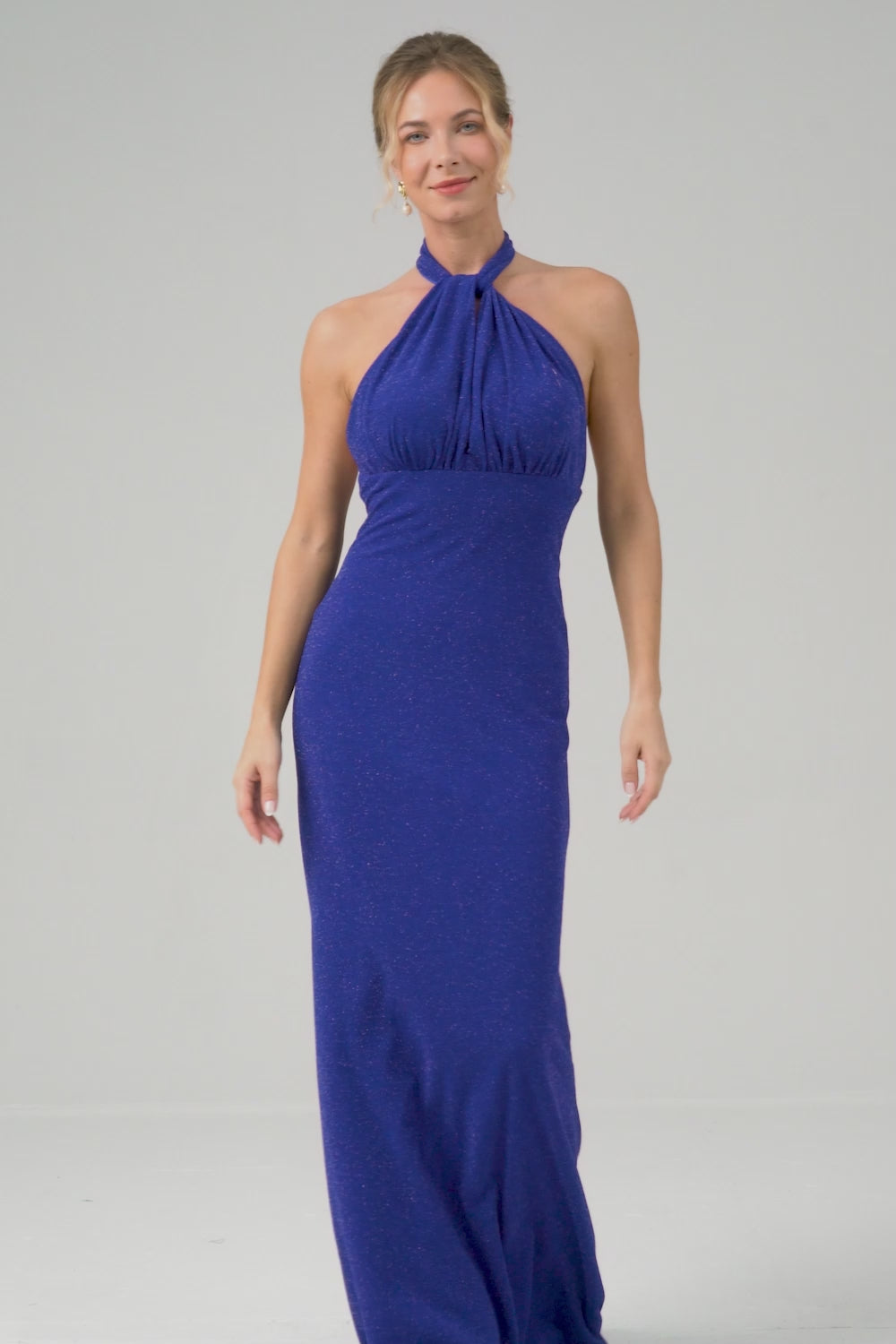 Glitter Blue Mermaid Halter Backless Long Bridesmaid Dress
