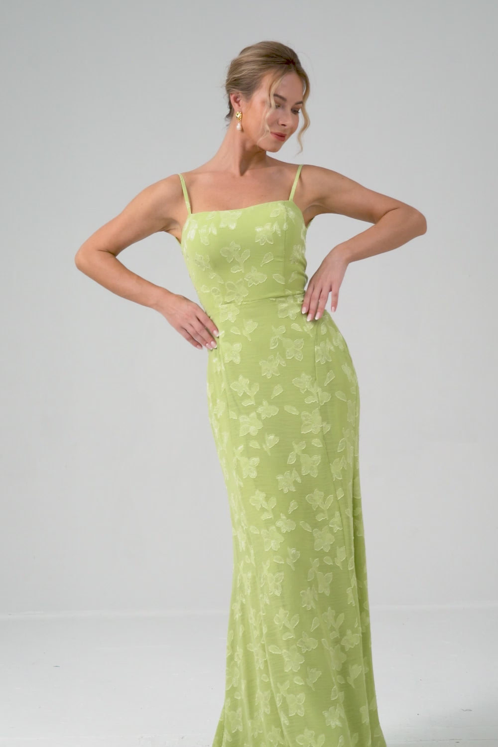 Green Mermaid Spaghetti Straps Embroidered Bridesmaid Dress with Lace Up Back