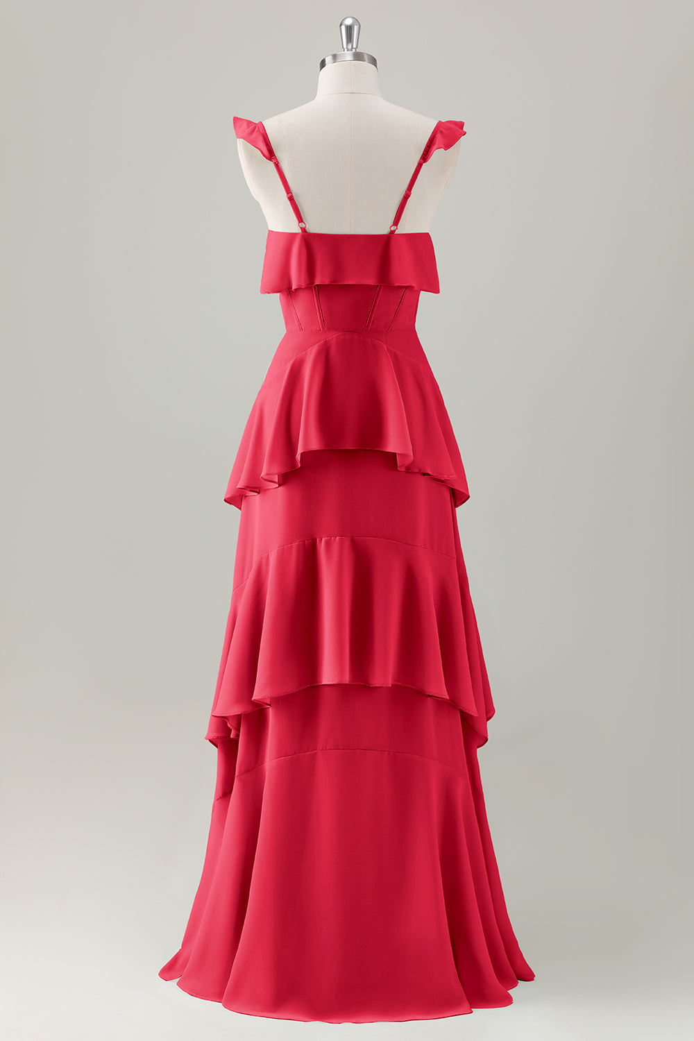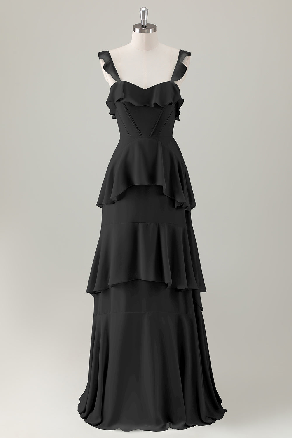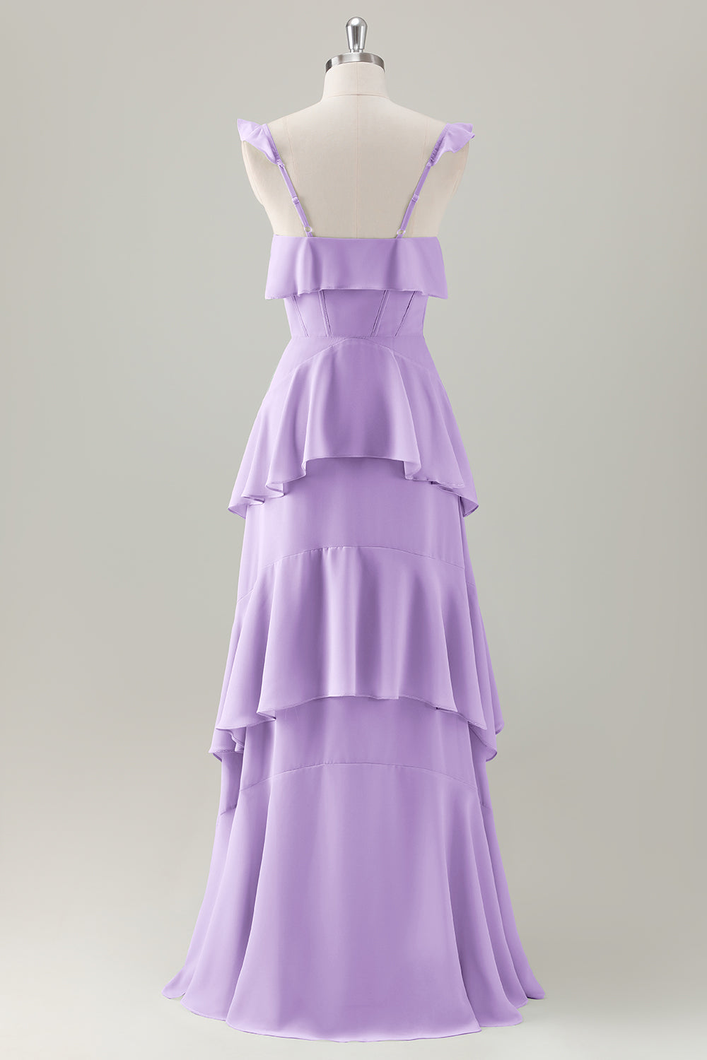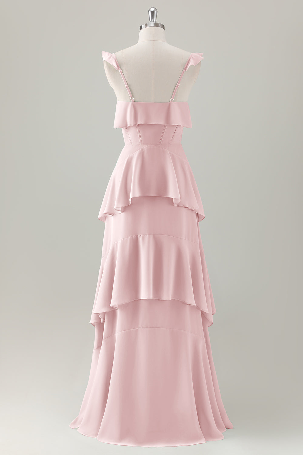 Light Green A Line Ruffle Tiered Chiffon Corset Long Bridesmaid Dress
