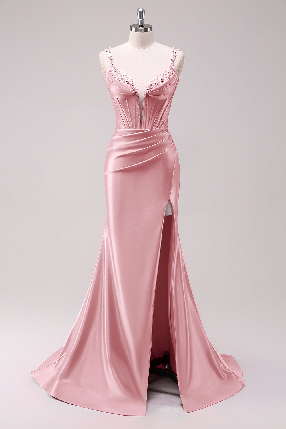 Fuchsia Mermaid Spaghetti Straps Corset Sequin Prom Dress with Slit