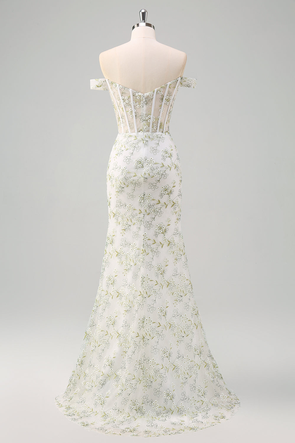 Light Green Mermaid Off the Shoulder Corset Long Prom Dress with Embroidery