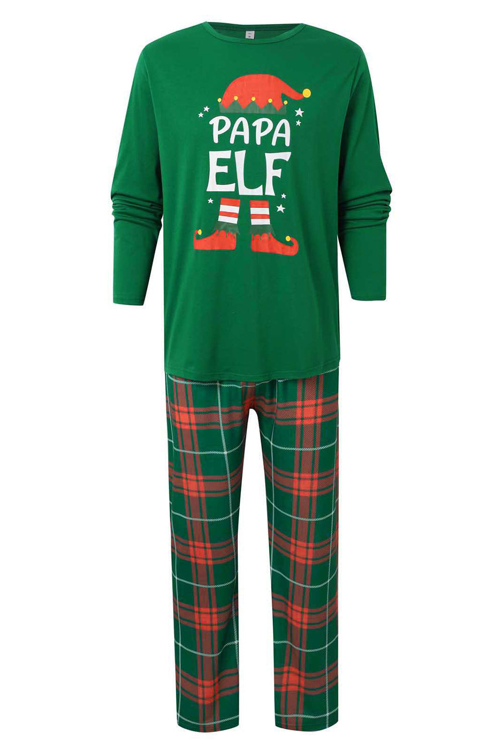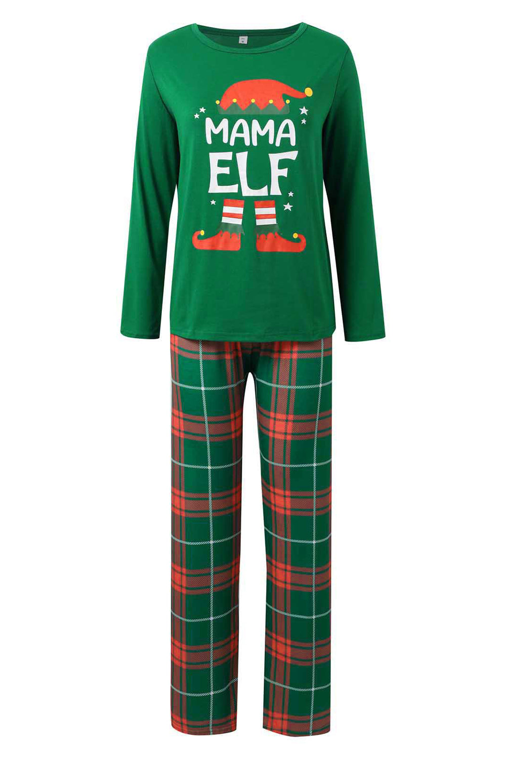 Dark Green Round Neck Christmas Plaid Family Matching Pajamas Set