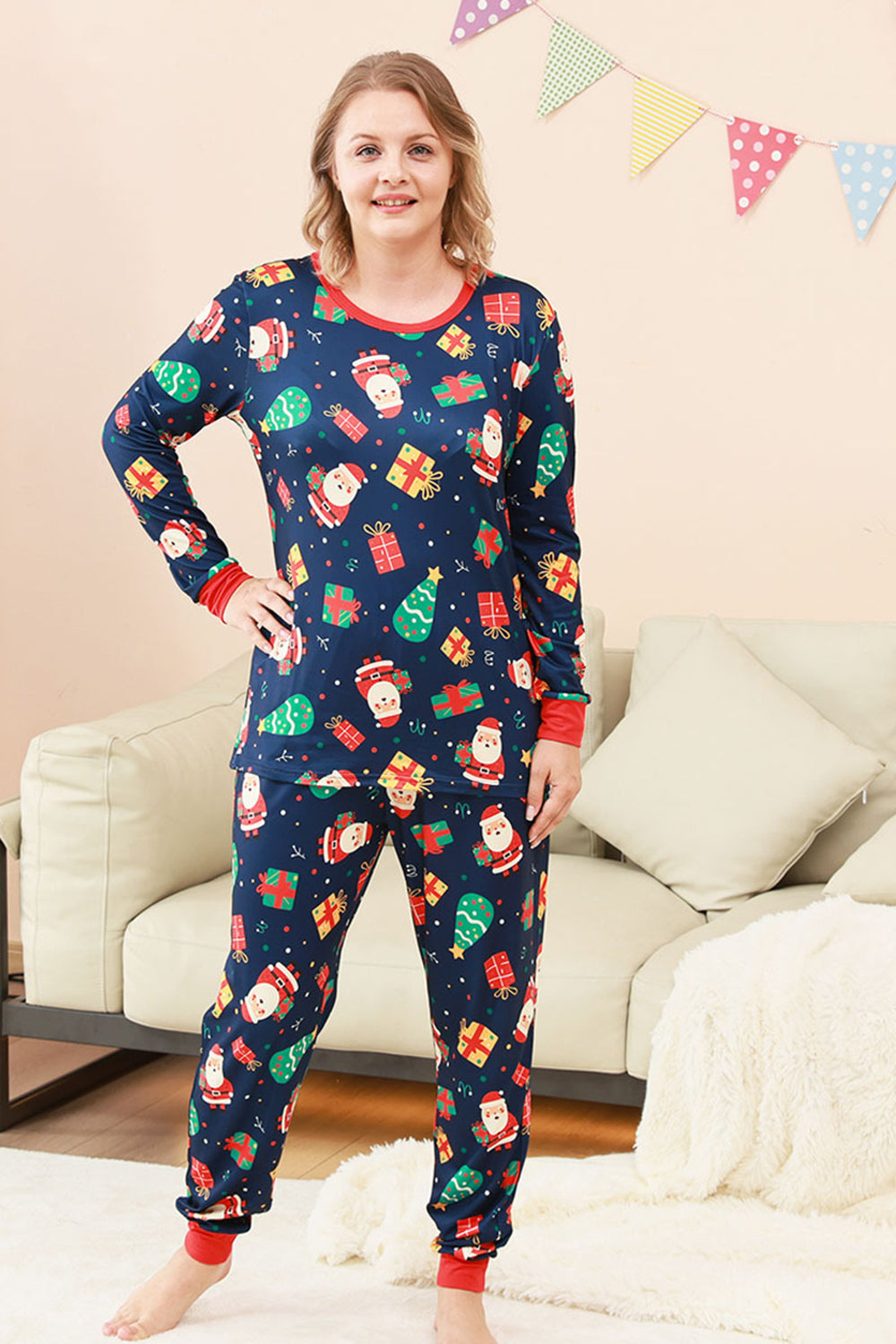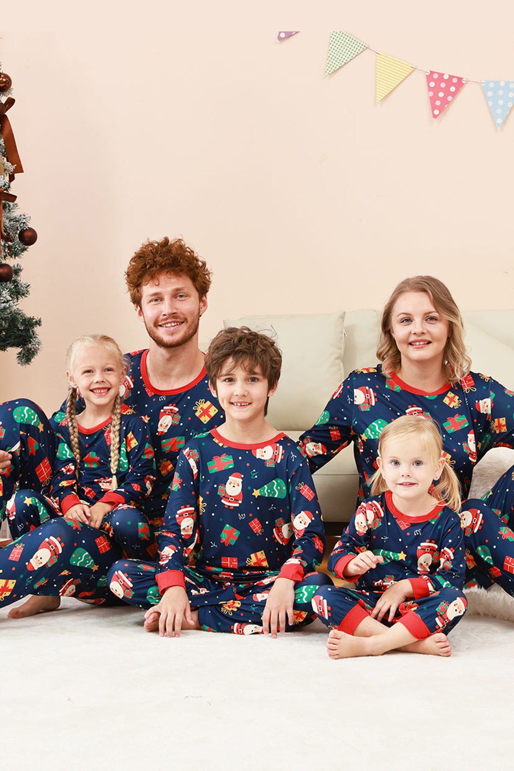 Navy Christmas Pattern Printed Family Pajamas Set