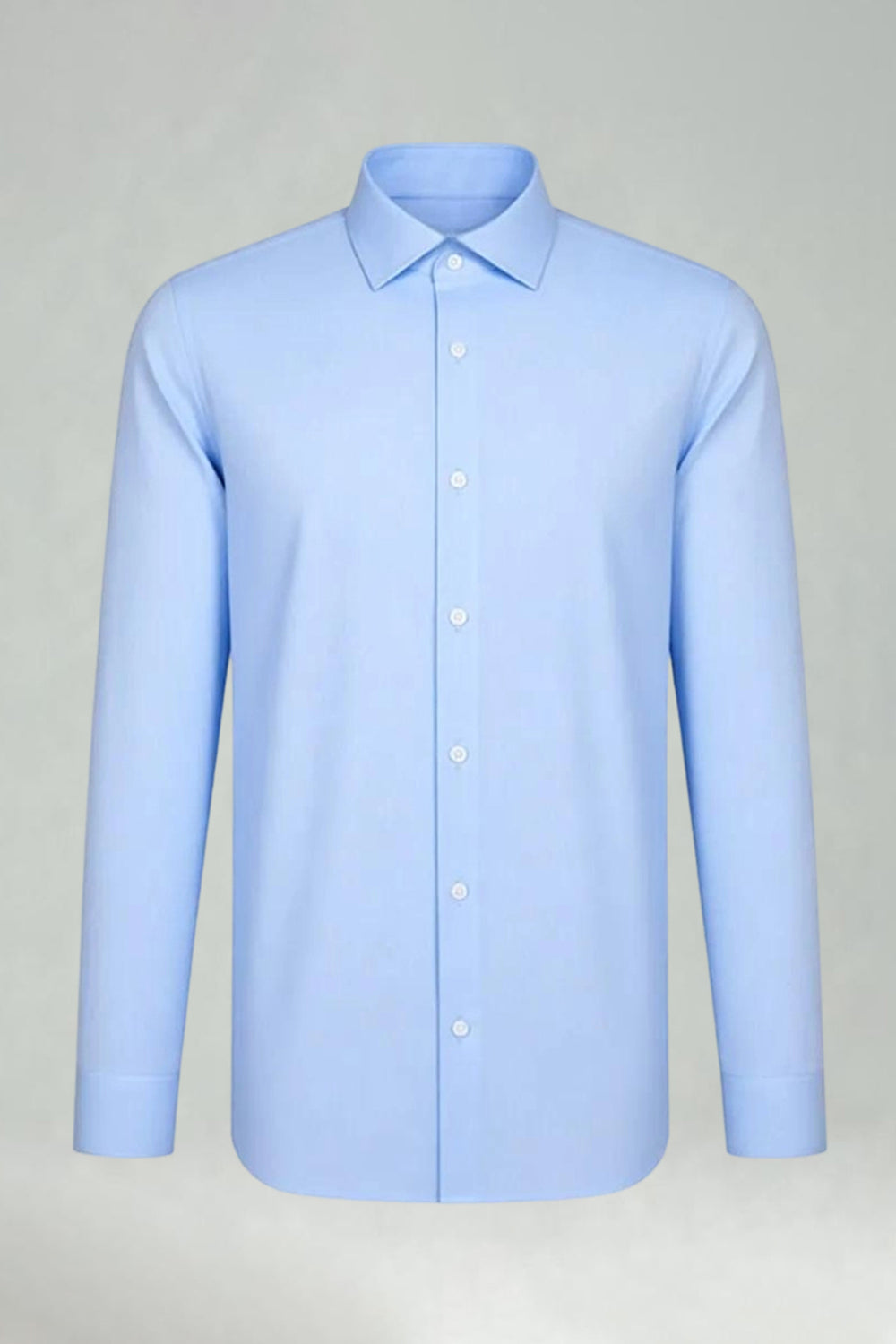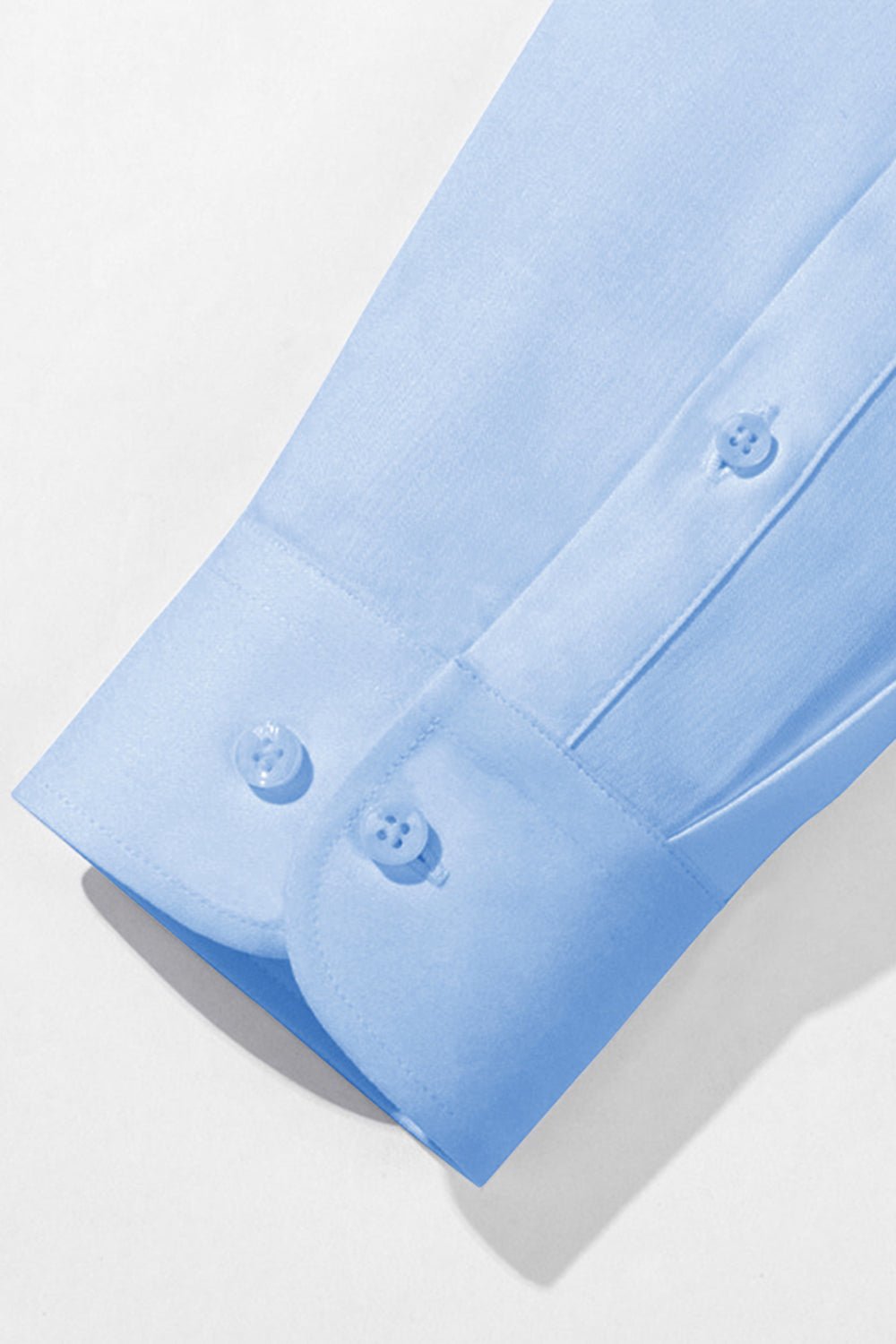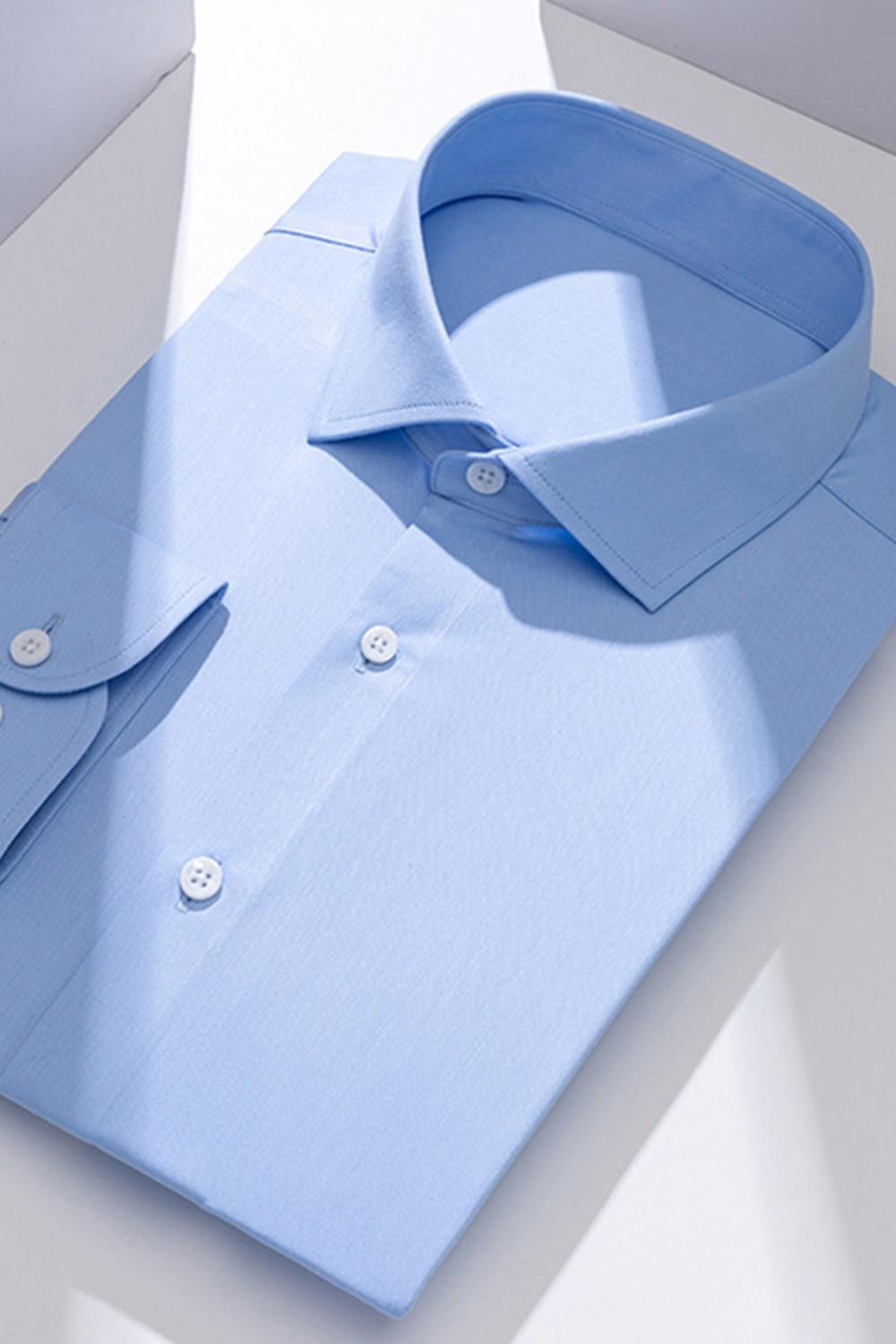 Men's Sky Blue Solid Long Sleeves Suits Shirt