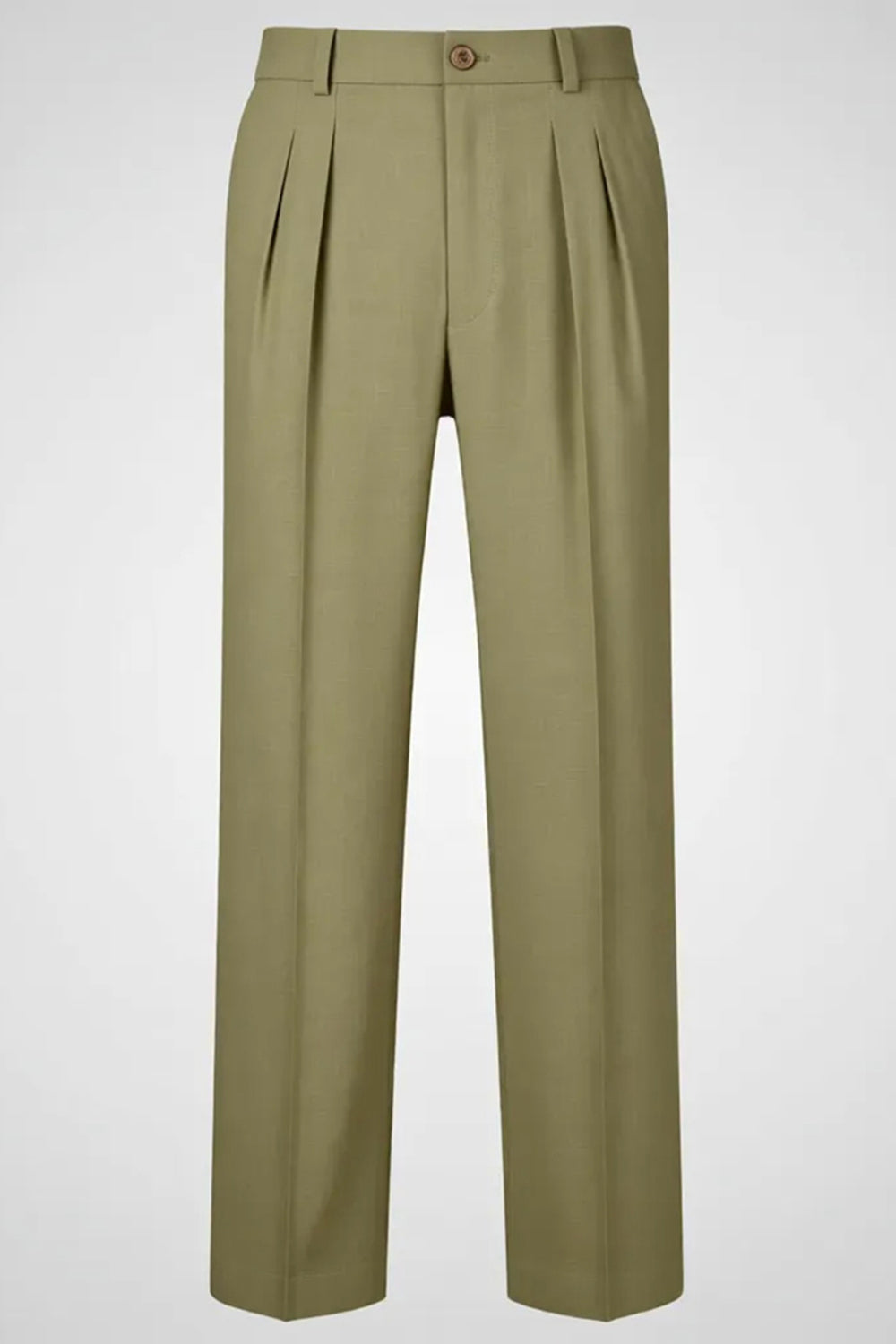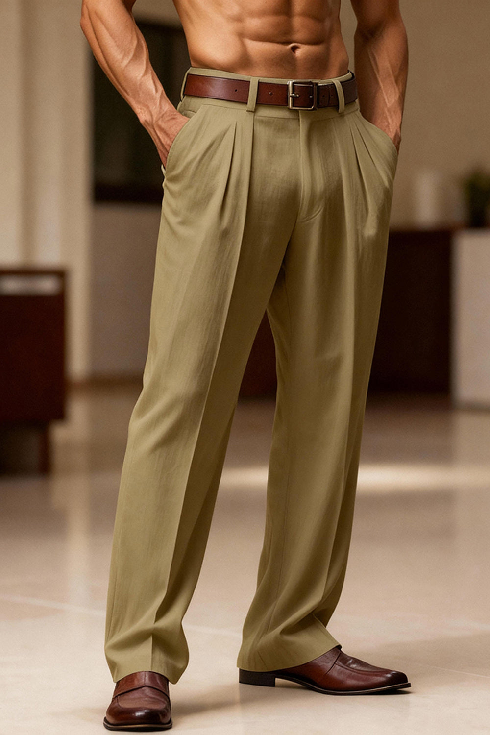 Army Green Straight Leg High Waisted Men's Suits Pants