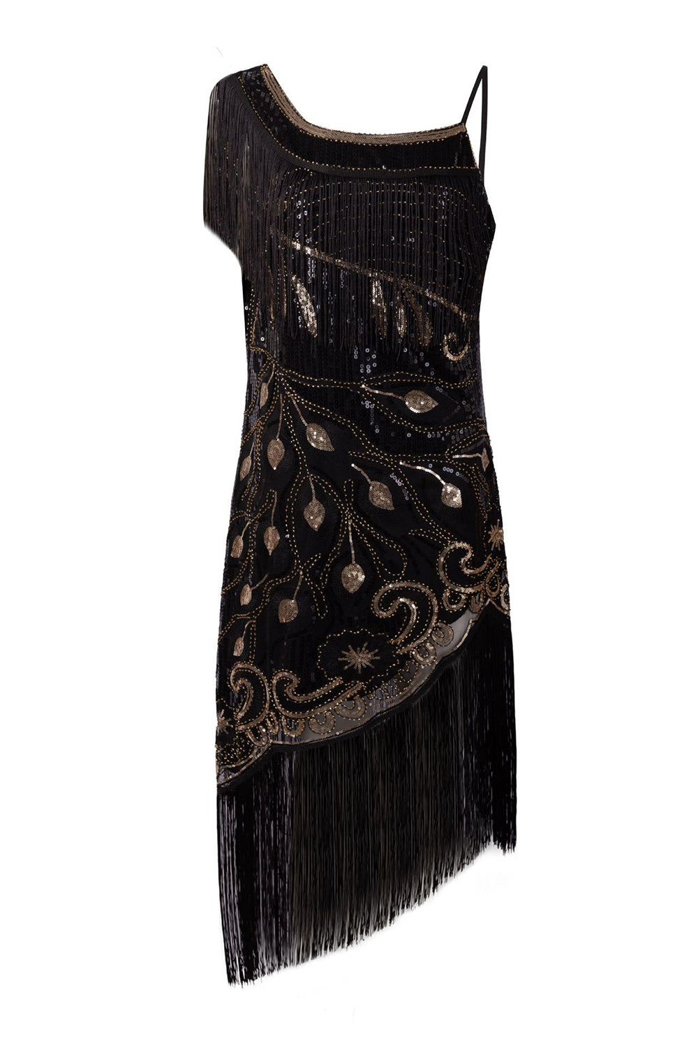 Black One Shoulder 1920s Dress with Fringes