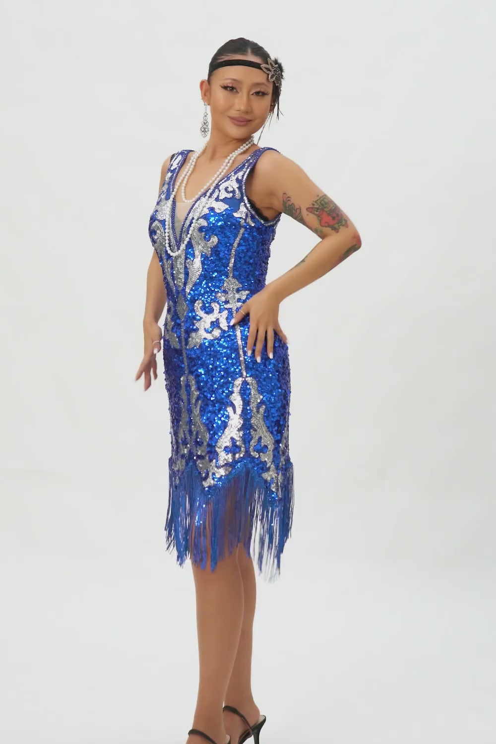 Royal Blue Sequin Gatsby Short 1920s Dress With Fringes