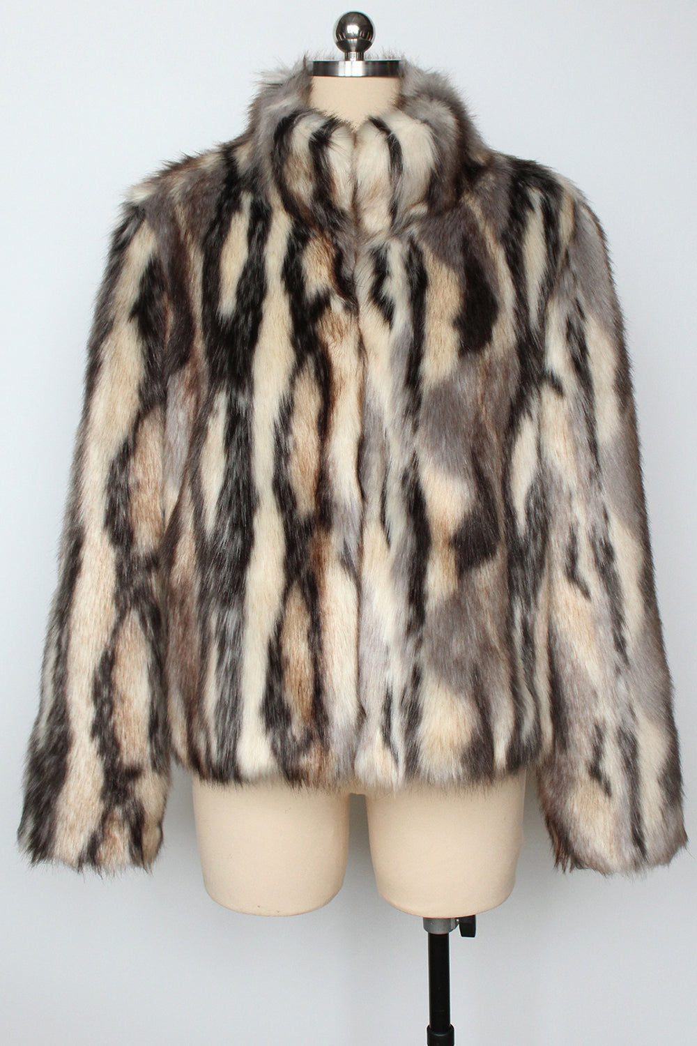 Black Striped Faux Fur Stand Collar Women Coat