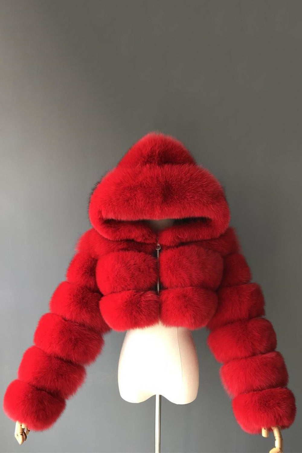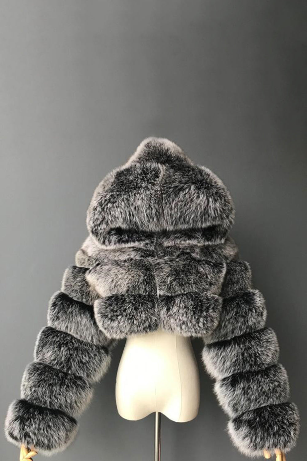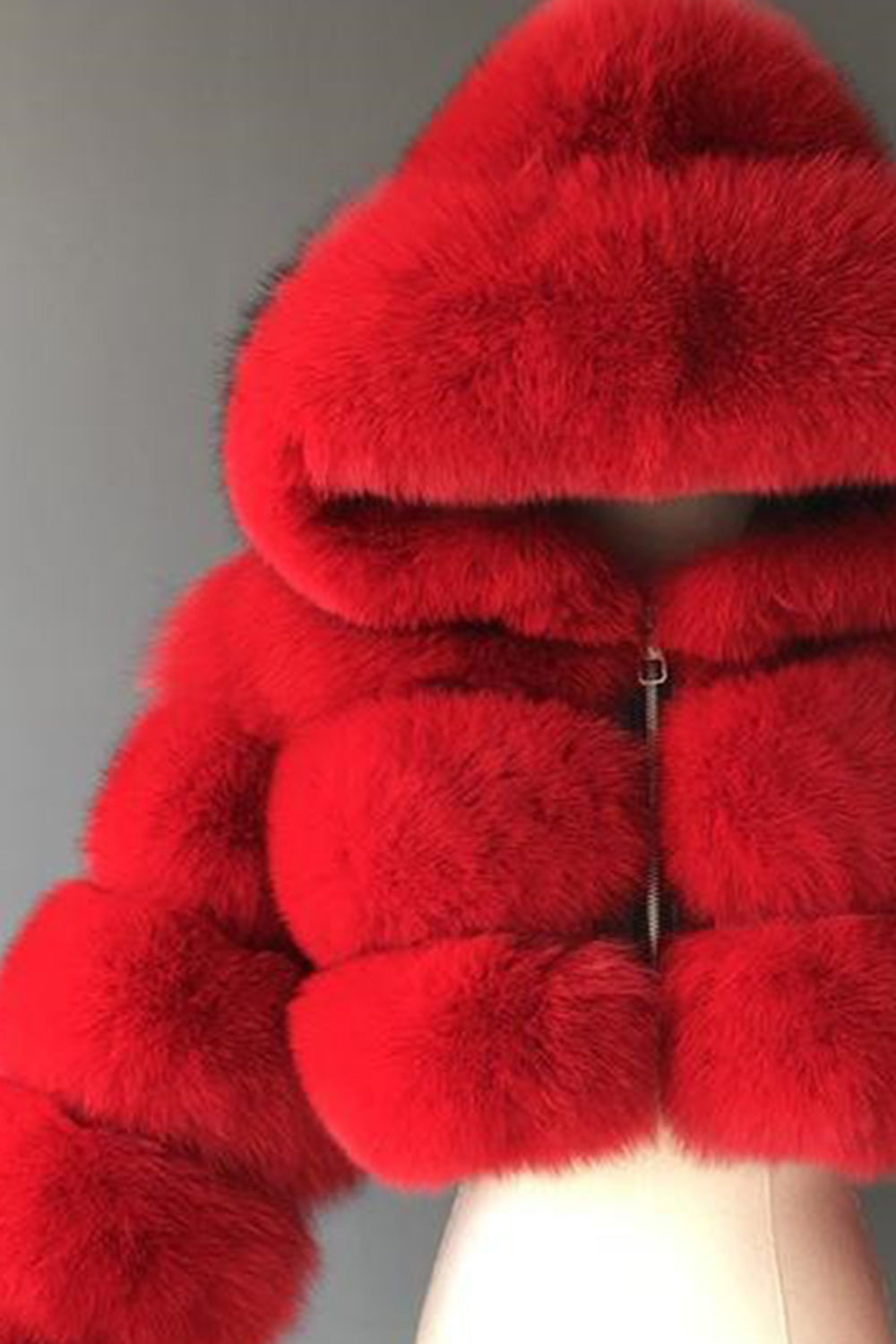 Royal Blue Hooded Faux Fur Thickened Women Coat