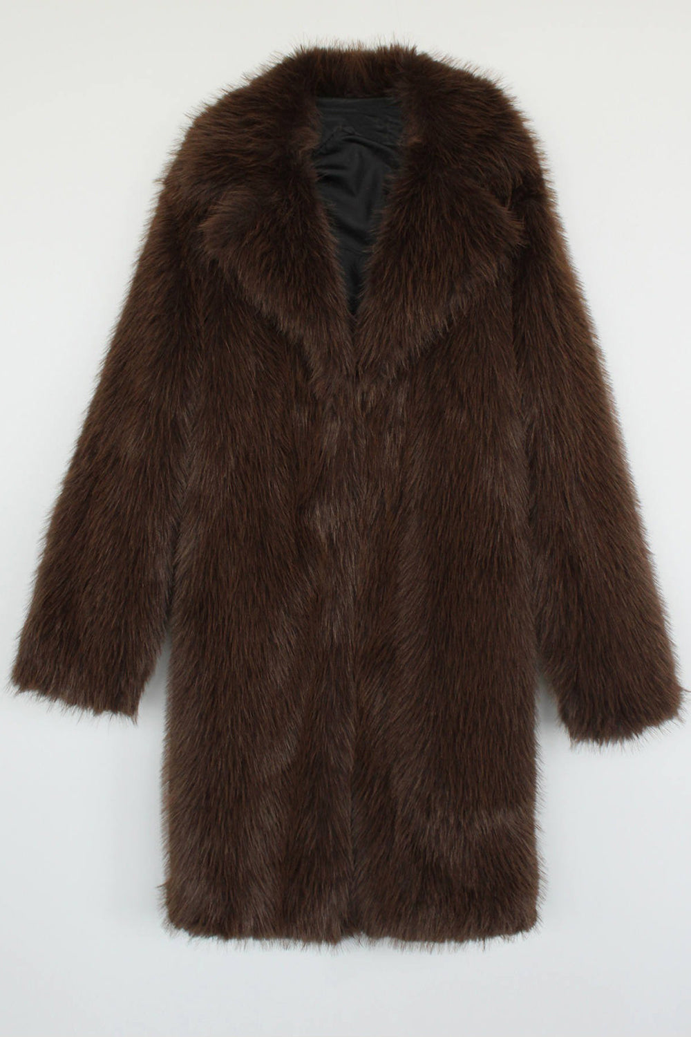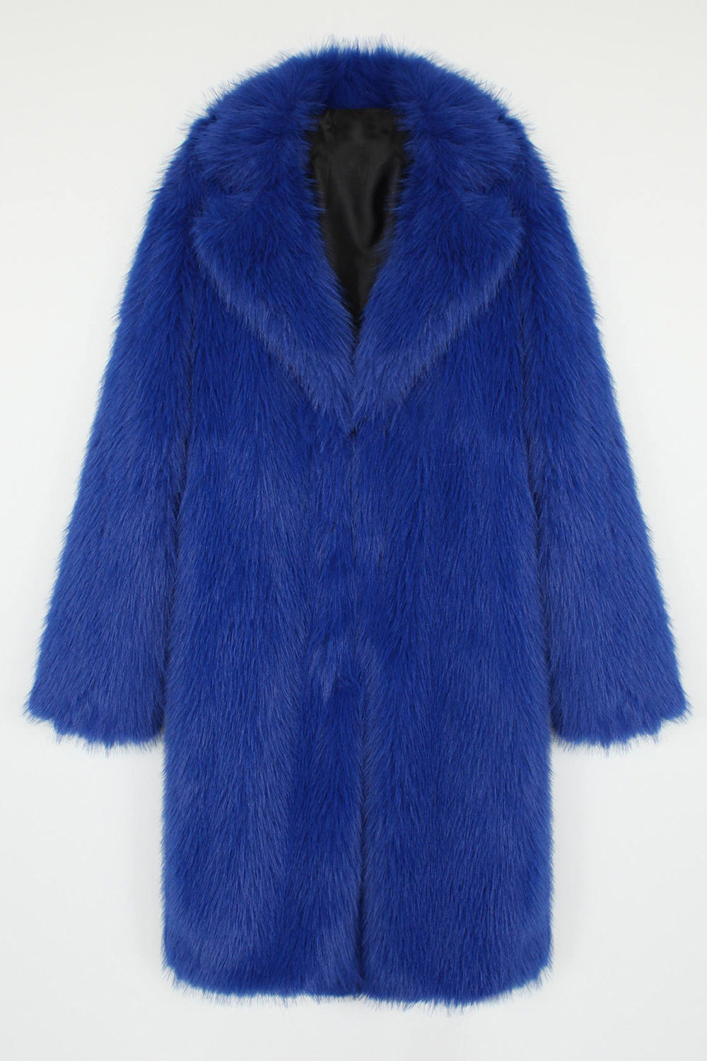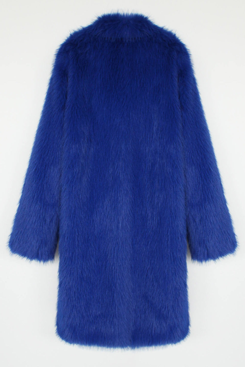 Royal Blue Notched lapel Solid Faux Fur Women Coat