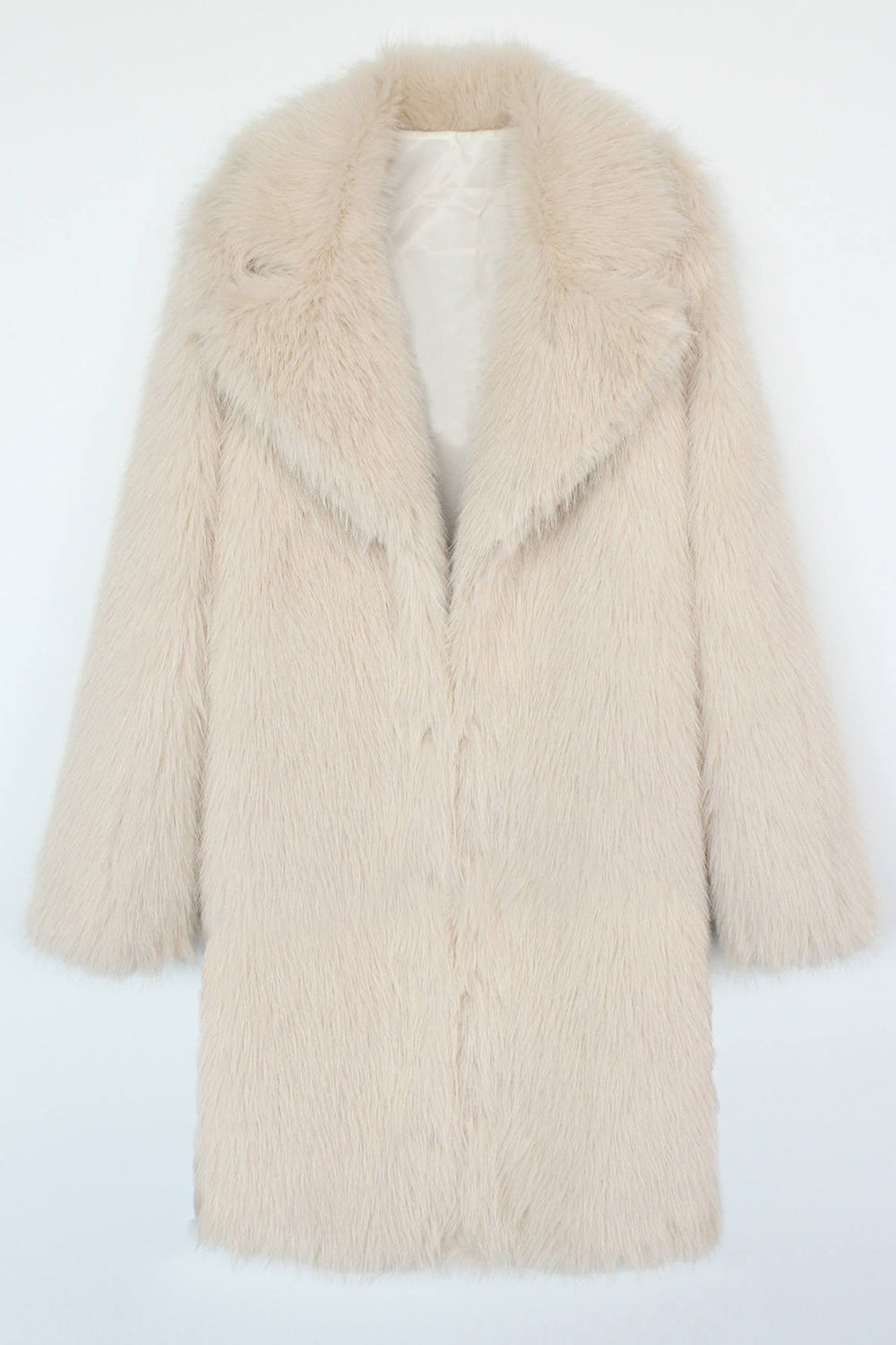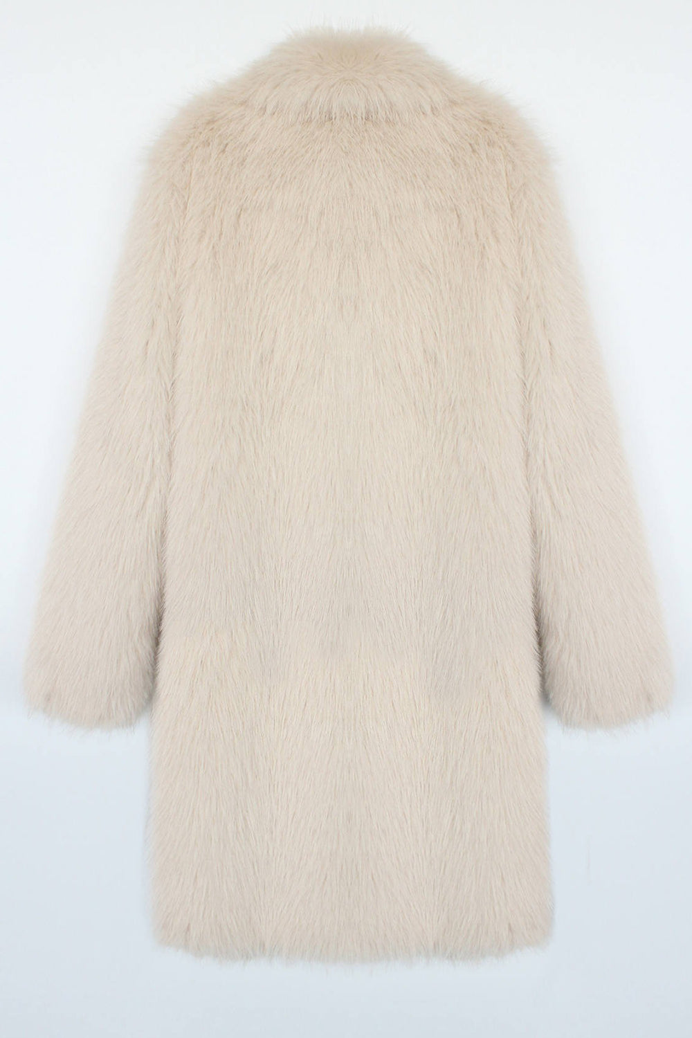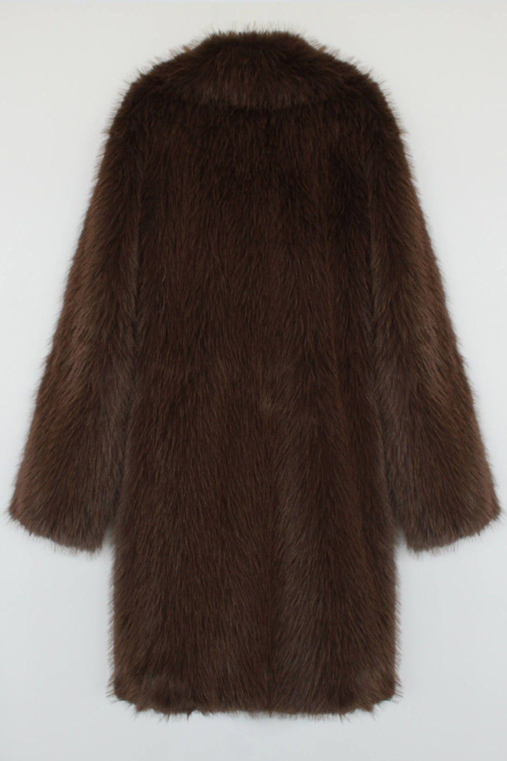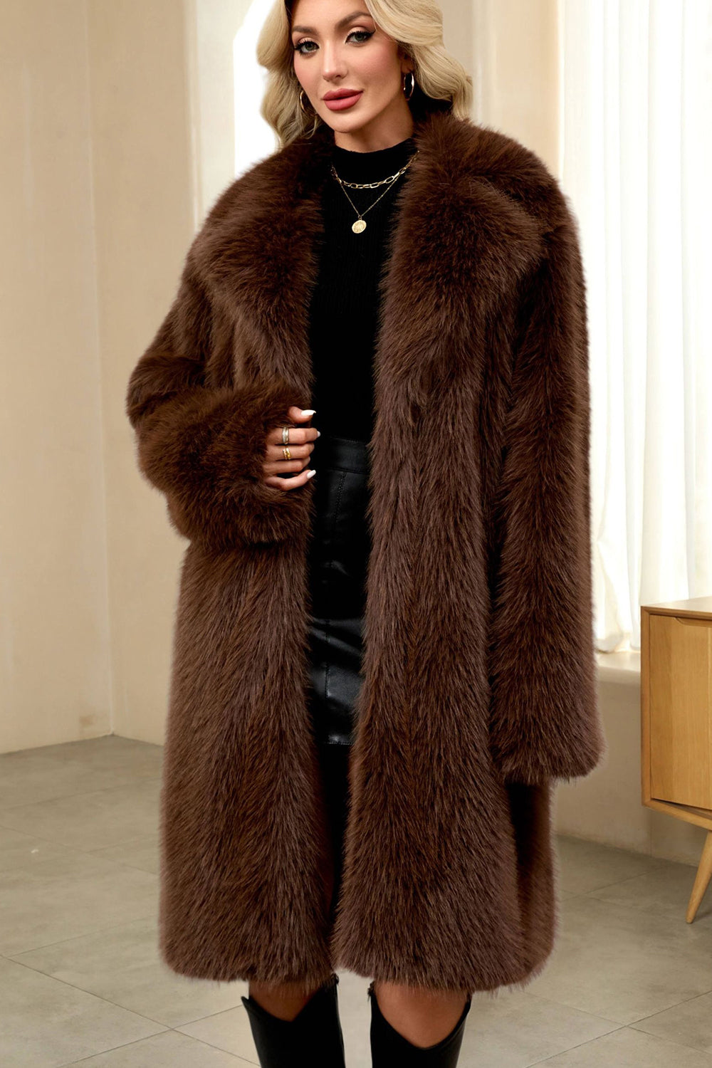 Royal Blue Notched lapel Solid Faux Fur Women Coat
