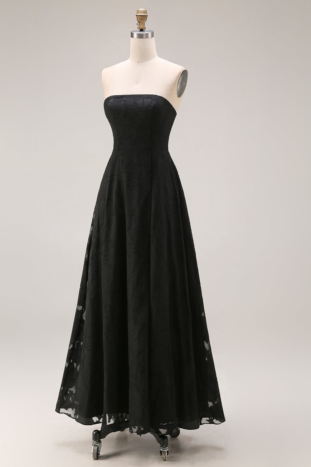 Black Strapless A Line Long Evening Dress with Lace