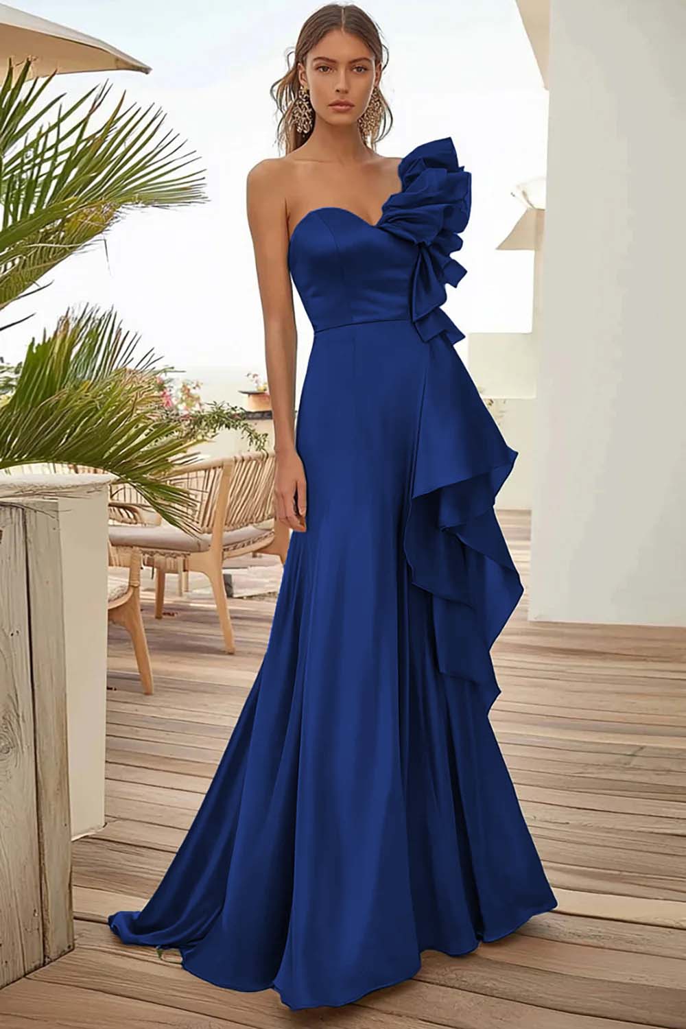 Mermaid Blue Asymmetrical Formal Dress With Ruffles