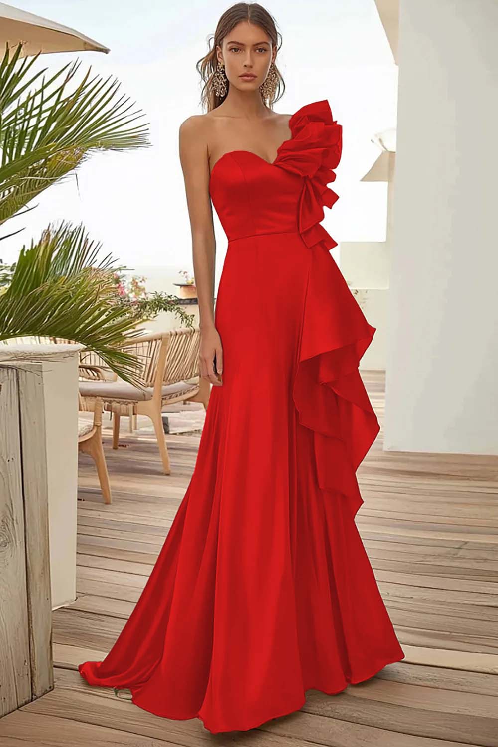 Black One Shoulder Long Formal Dress With Ruffles