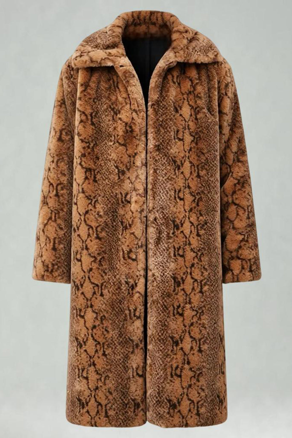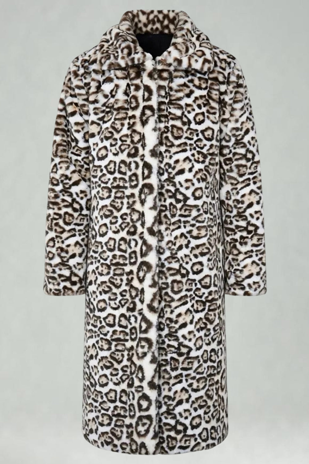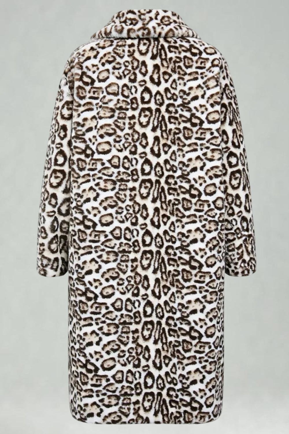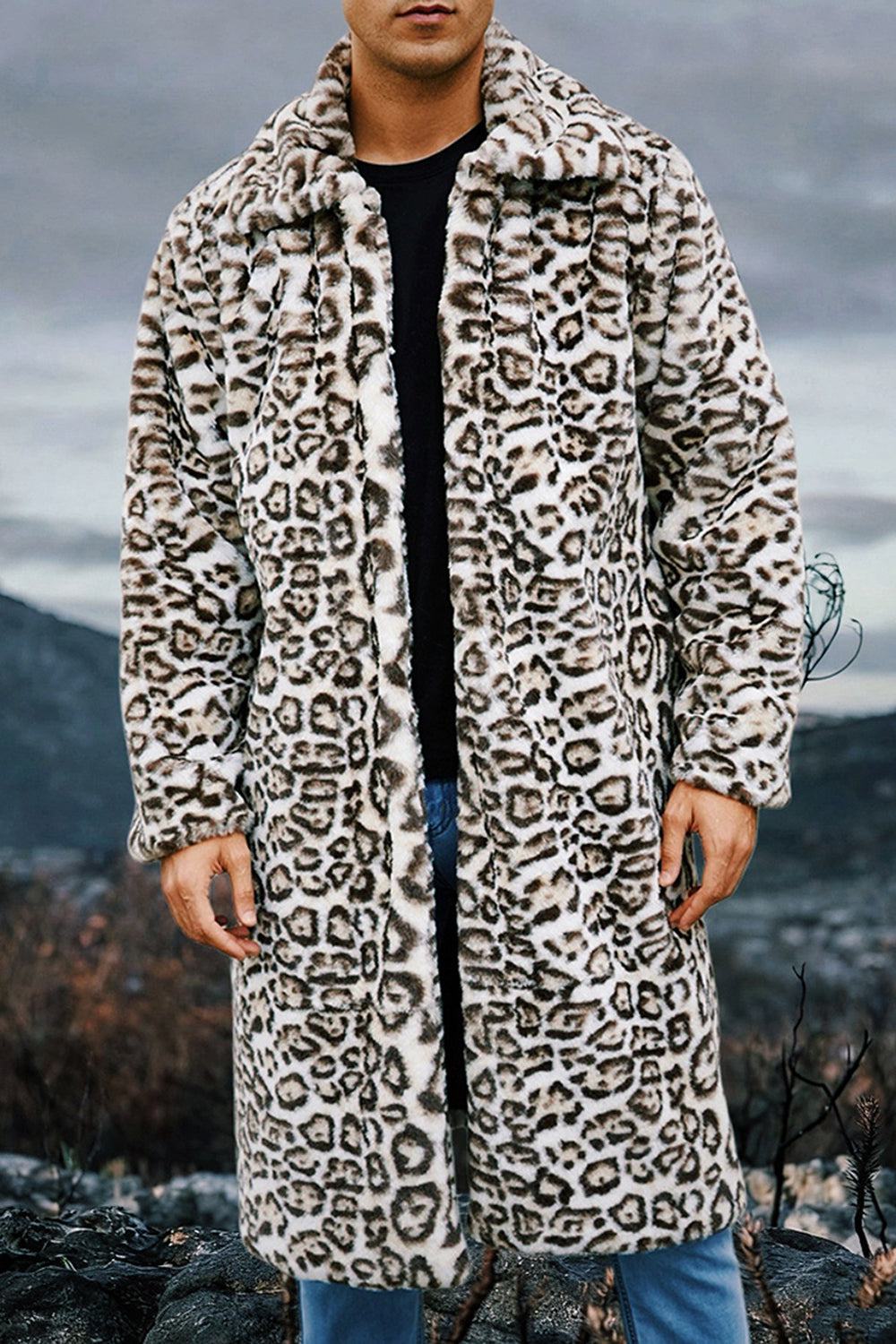 Ivory Leopard Faux Fur Warmth Long Men's Coat with Pockets