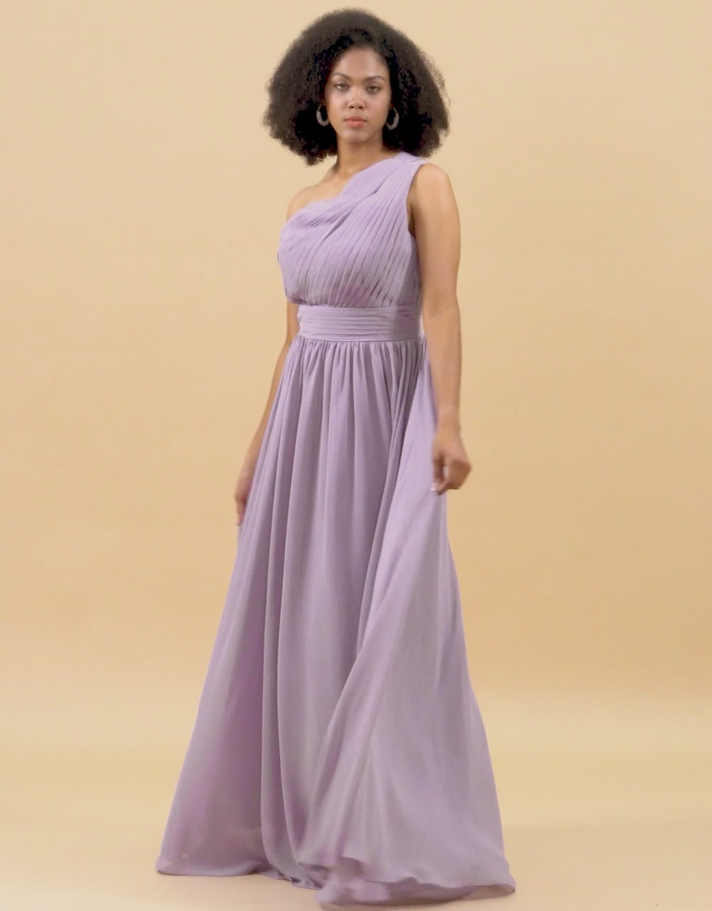 Lilac Chiffon One Shoulder Bridesmaid Dress with Ruffles