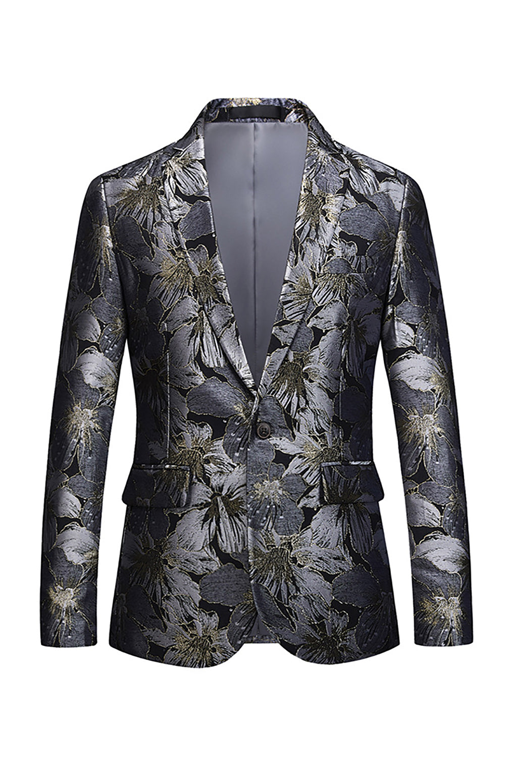 Men's Jacquard Black Notched Lapel One Button Party Blazer