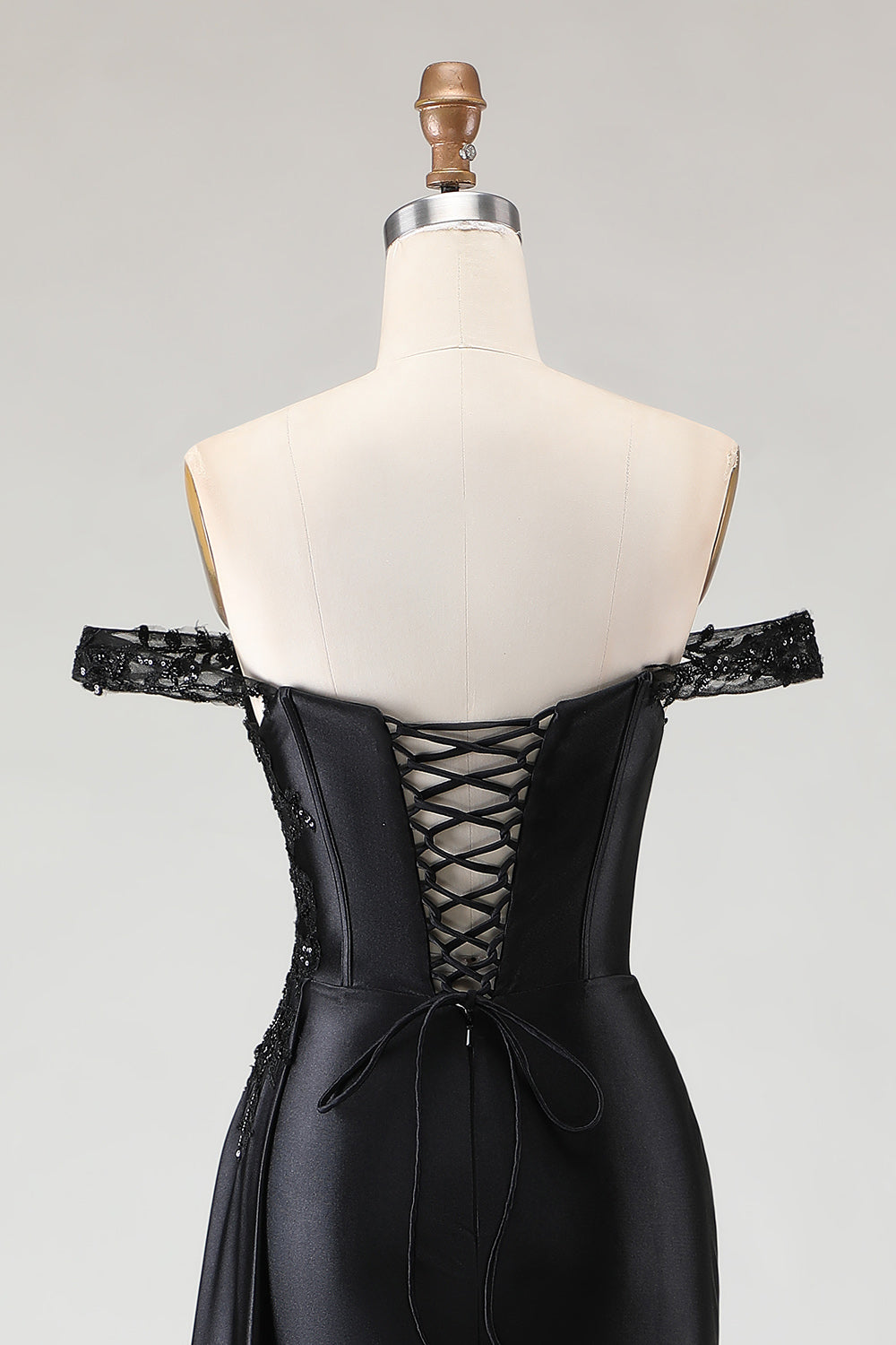 Off the Shoulder Black Mermaid Sequin Long Prom Dress with Slit