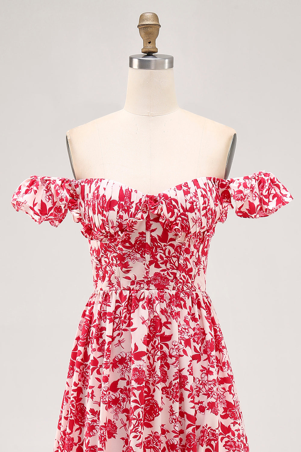 Off The Shoulder Ruffled Printed Blue Wedding Guest Dress with Slit